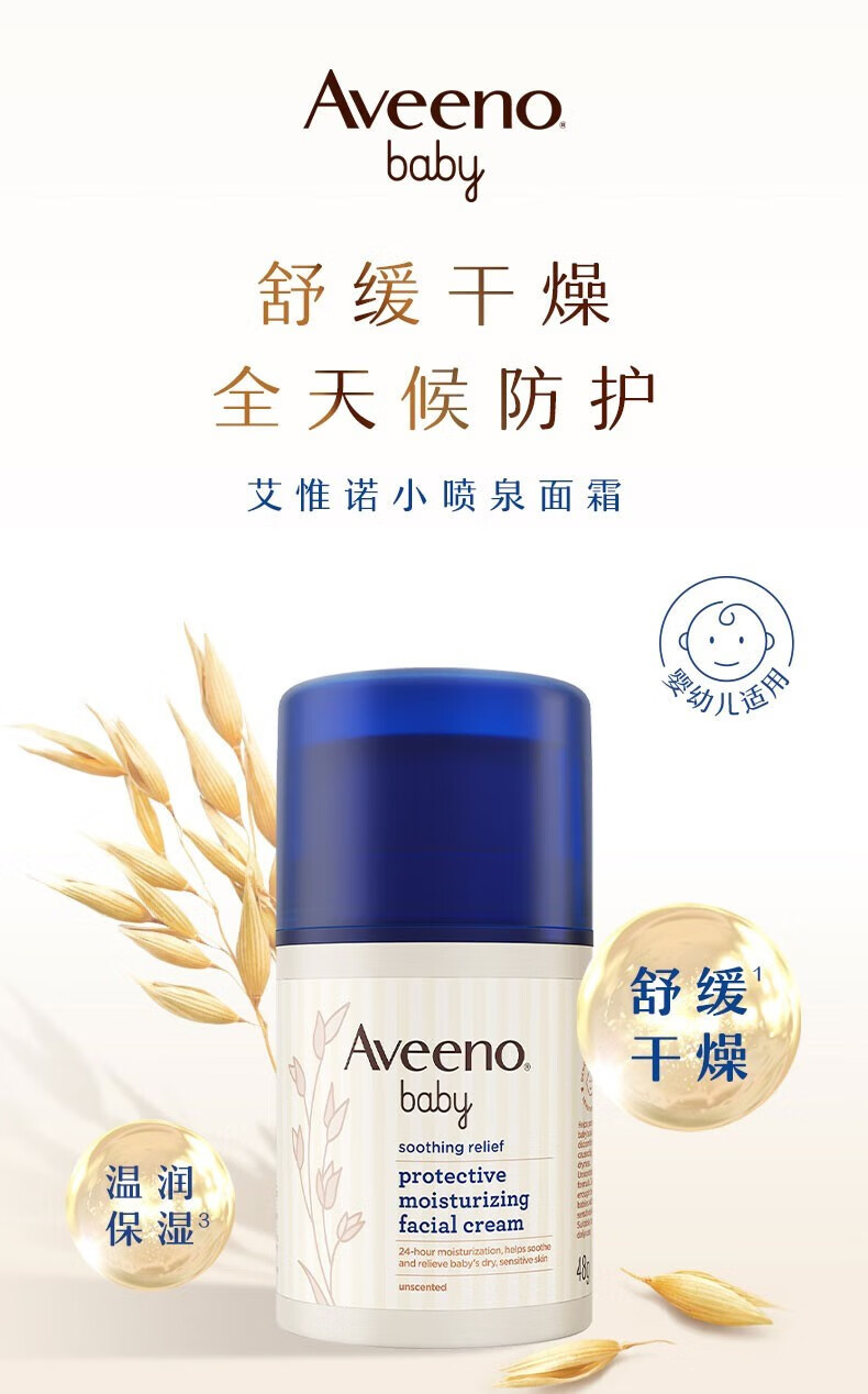 艾惟诺婴儿舒缓柔嫩防护面霜48g/117762 三重燕麦精华强韧面部防护倍润小喷泉
