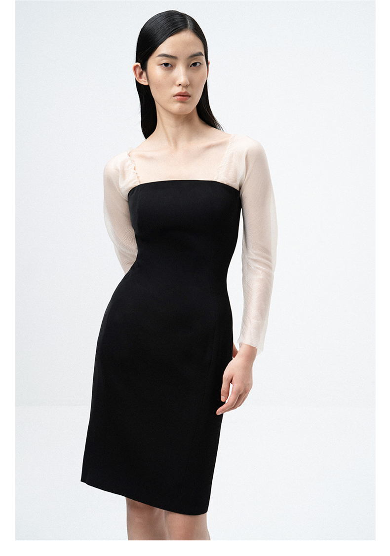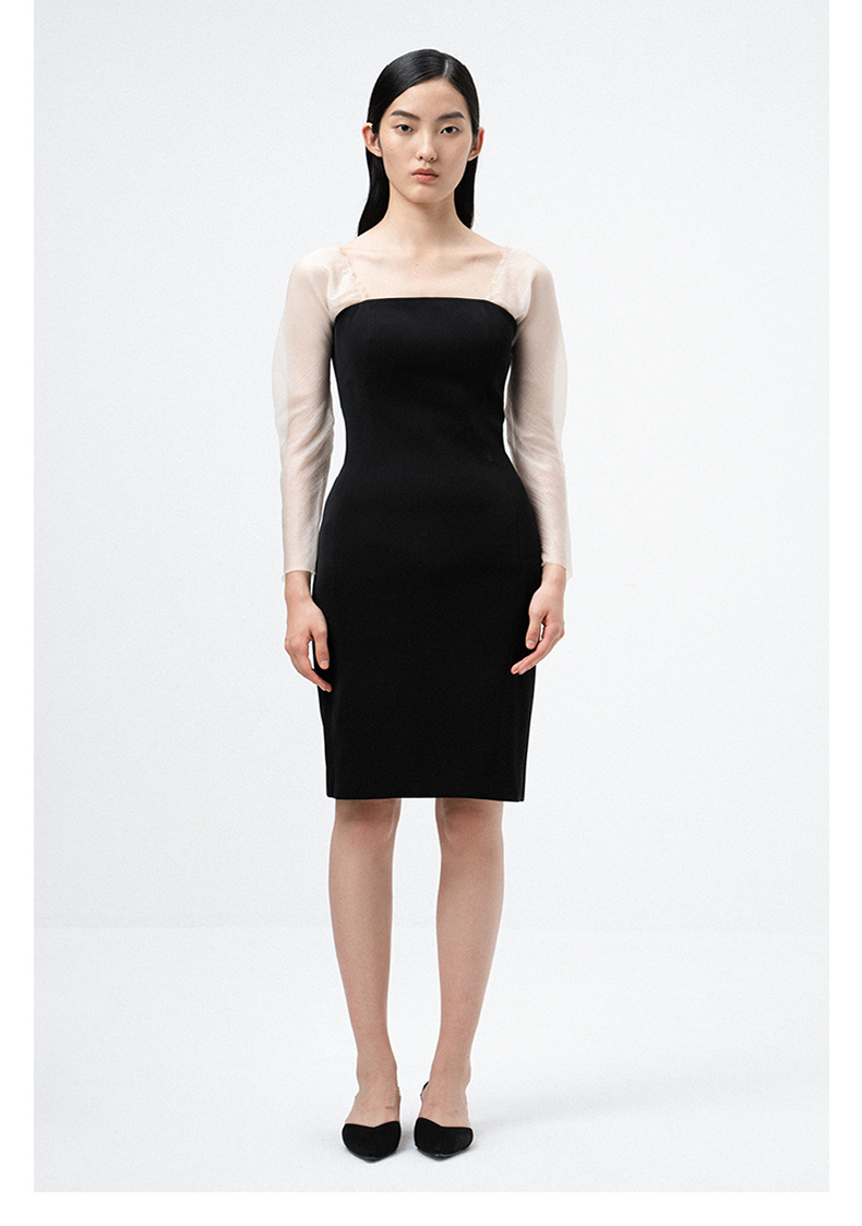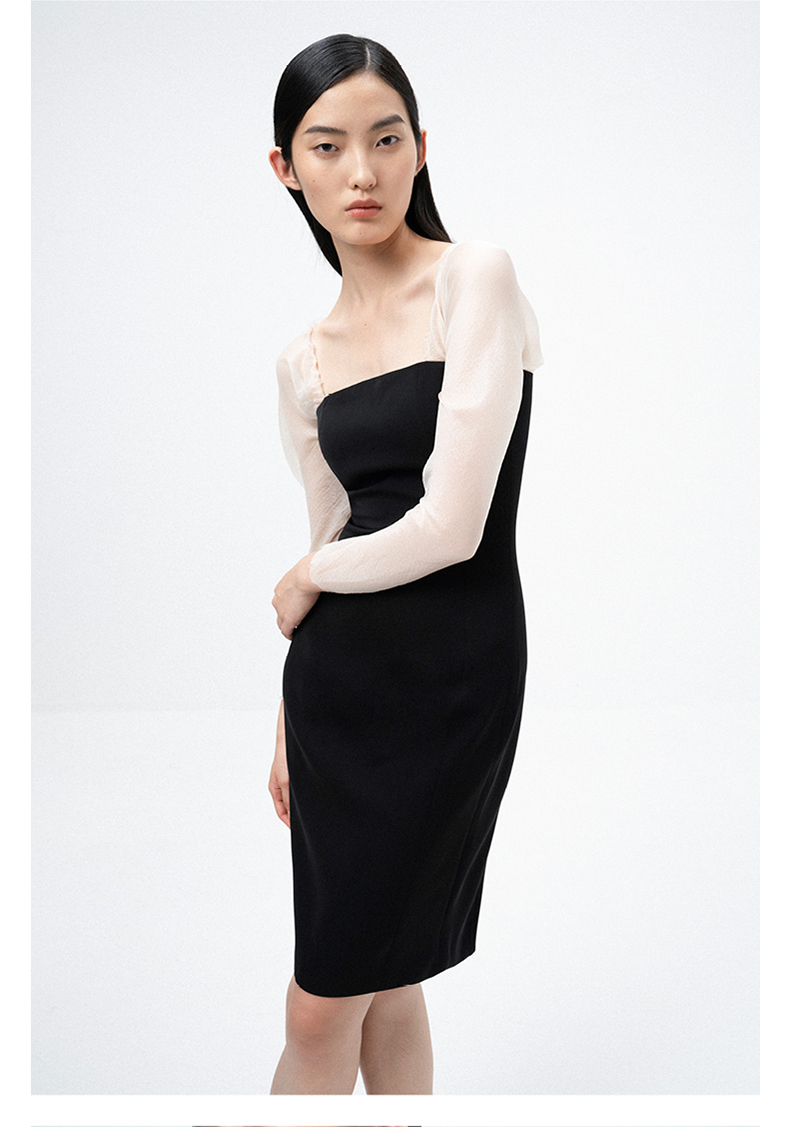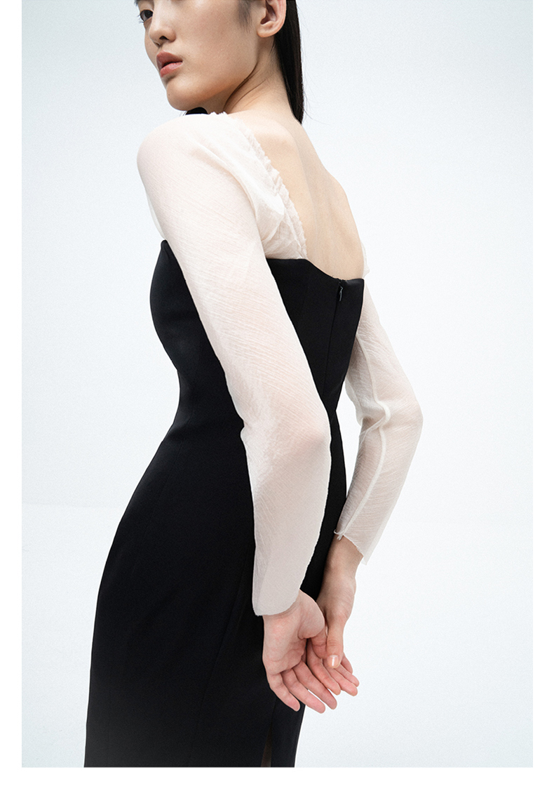 AtelierMissLu / Lucia-黑白拼接薄纱典雅修身连衣裙