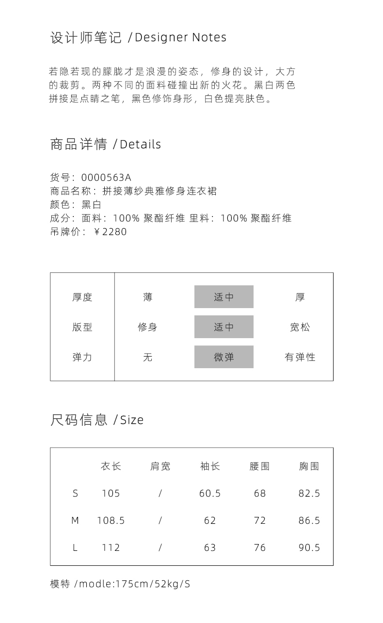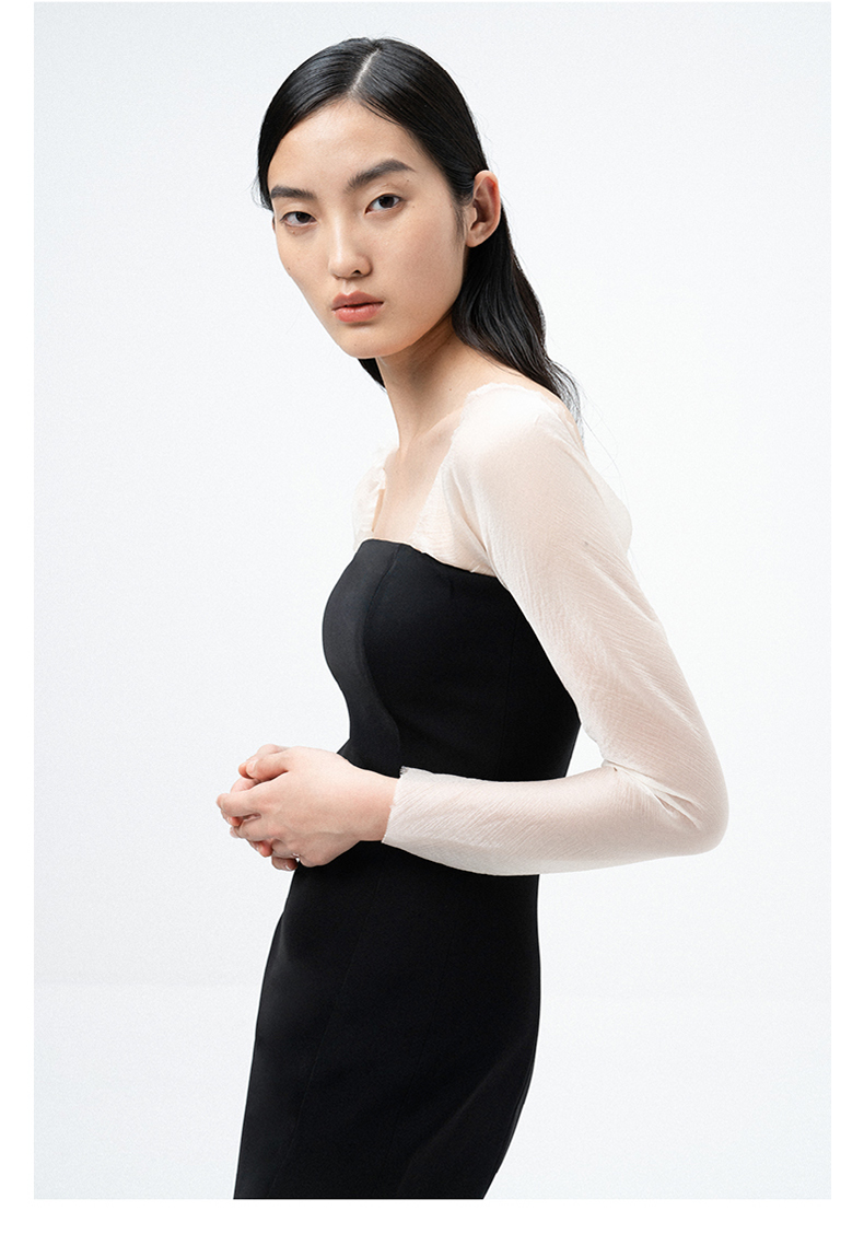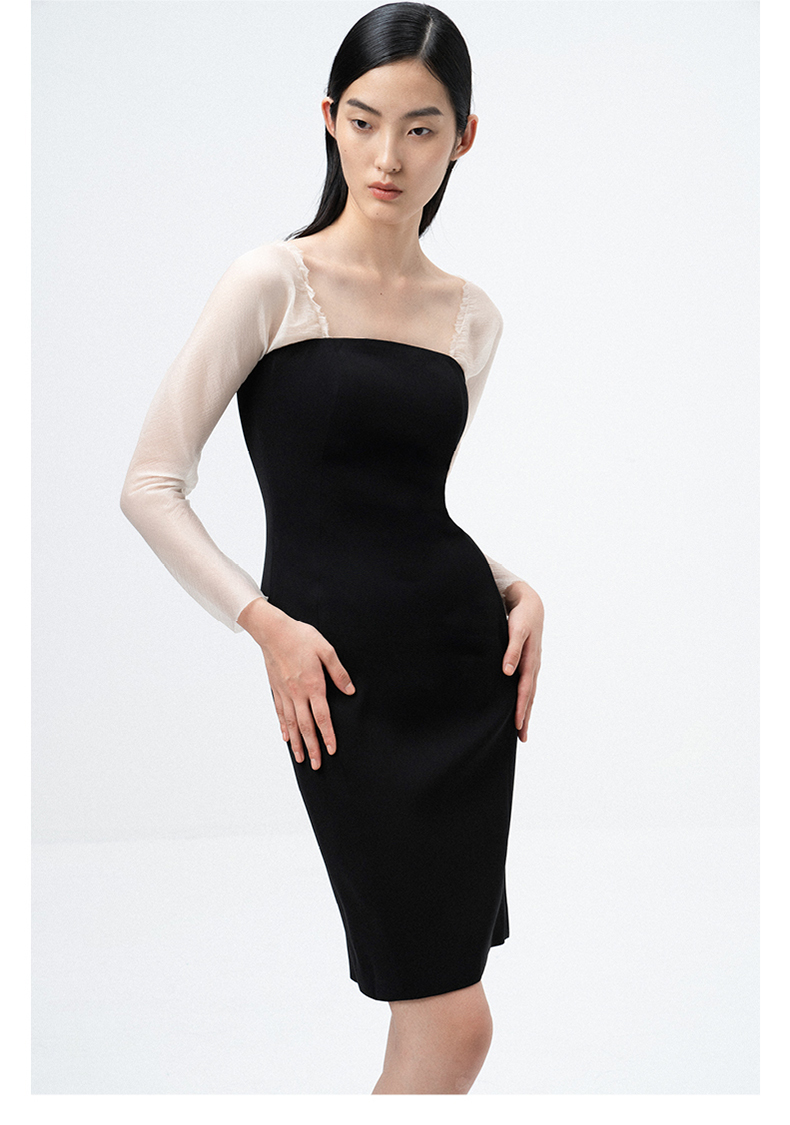 AtelierMissLu / Lucia-黑白拼接薄纱典雅修身连衣裙