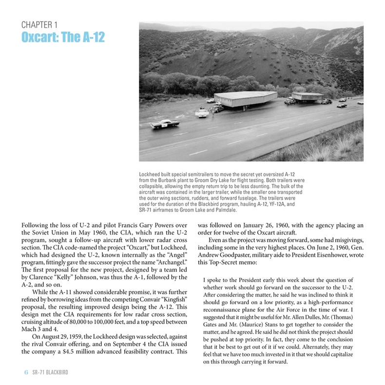 这本关于SR-71的新书是对希弗军方出版的《洛克希德SR-71黑鸟:美国传奇3马赫侦察机图解史》(詹姆斯·古德尔著)的精彩补充,后者篇幅更大,价格也更高;本书也取代了比尔·霍尔德撰写的畅销书《黑鸟》,后者于2002年出版,现已绝版。