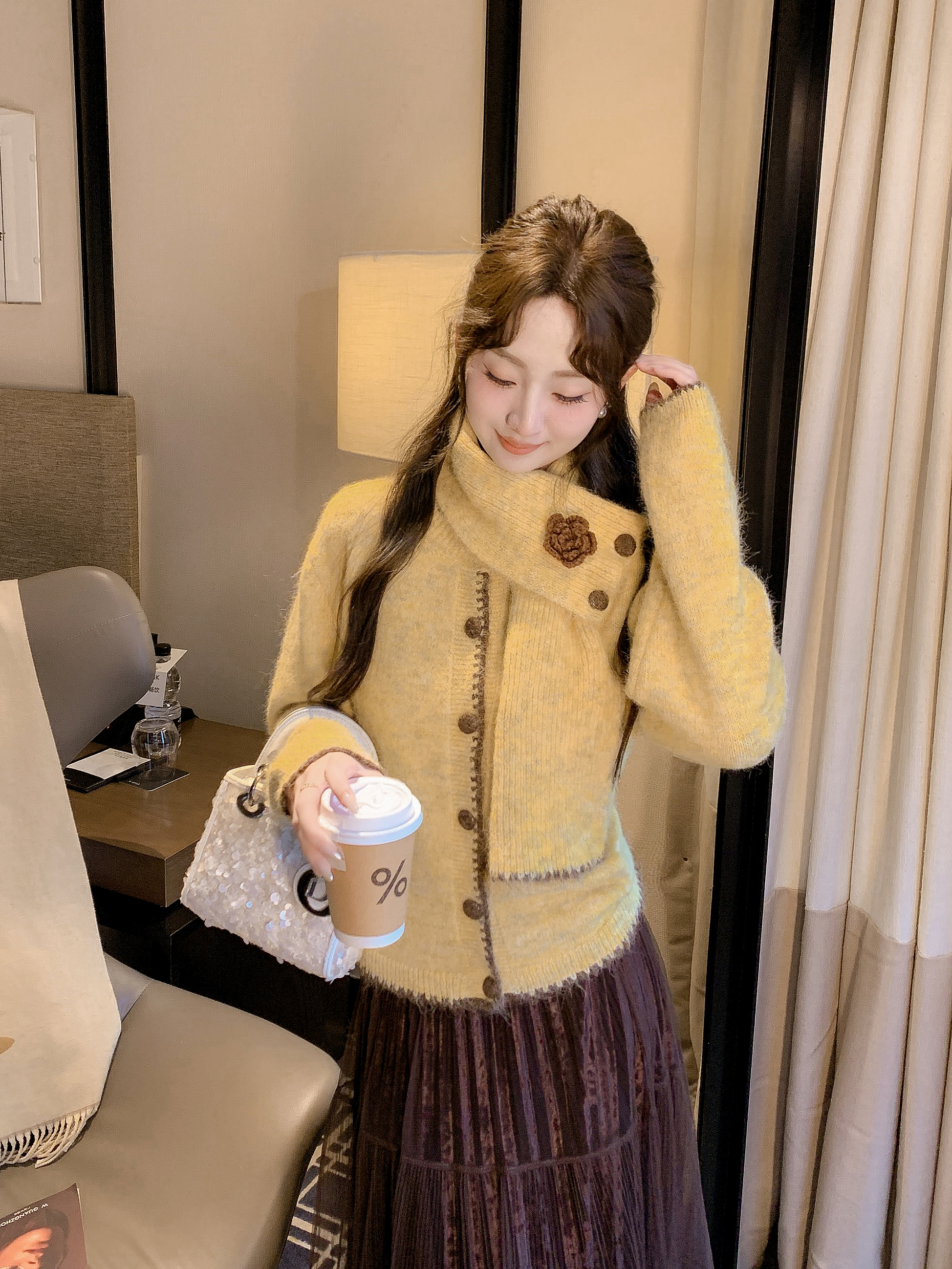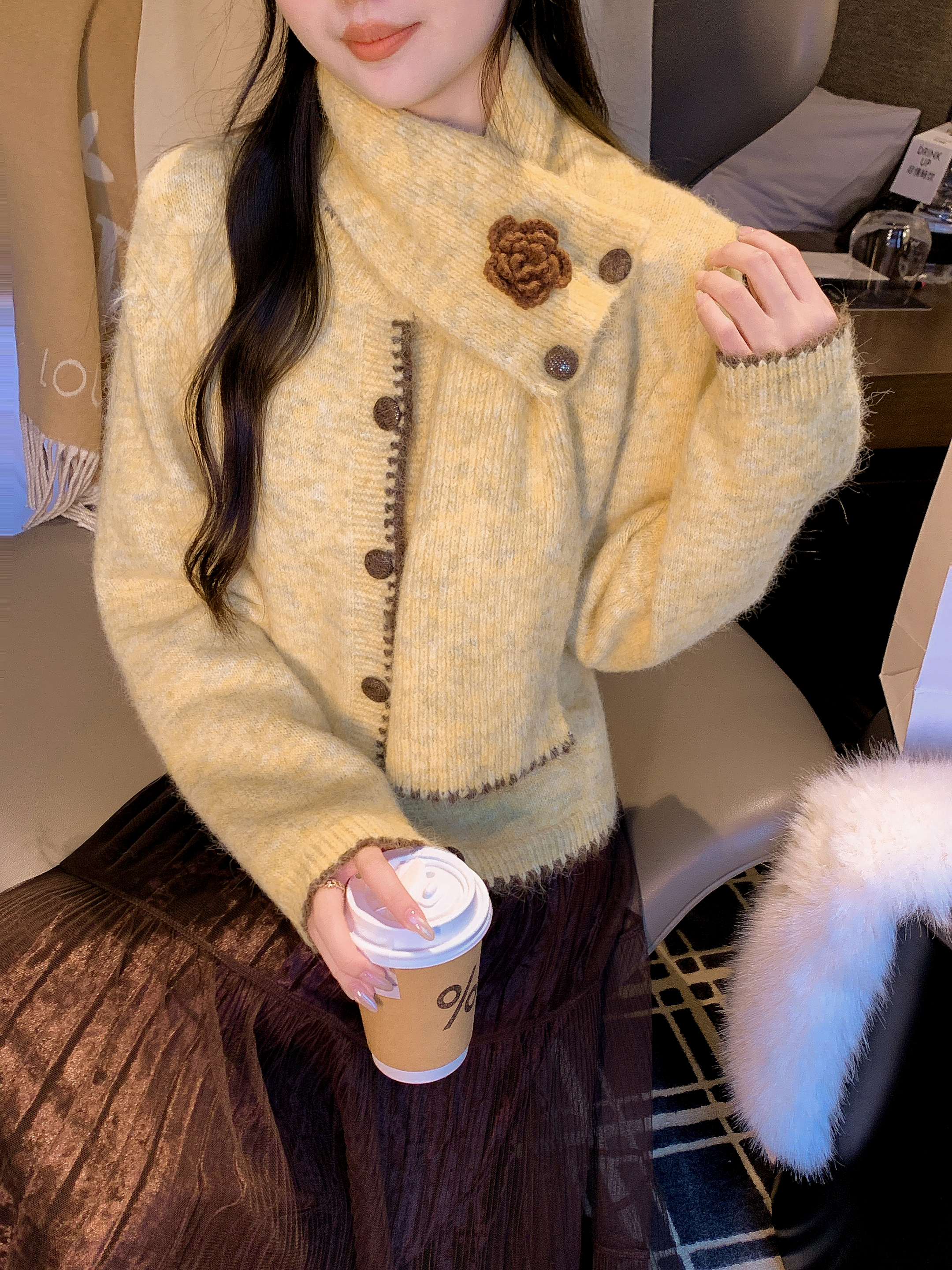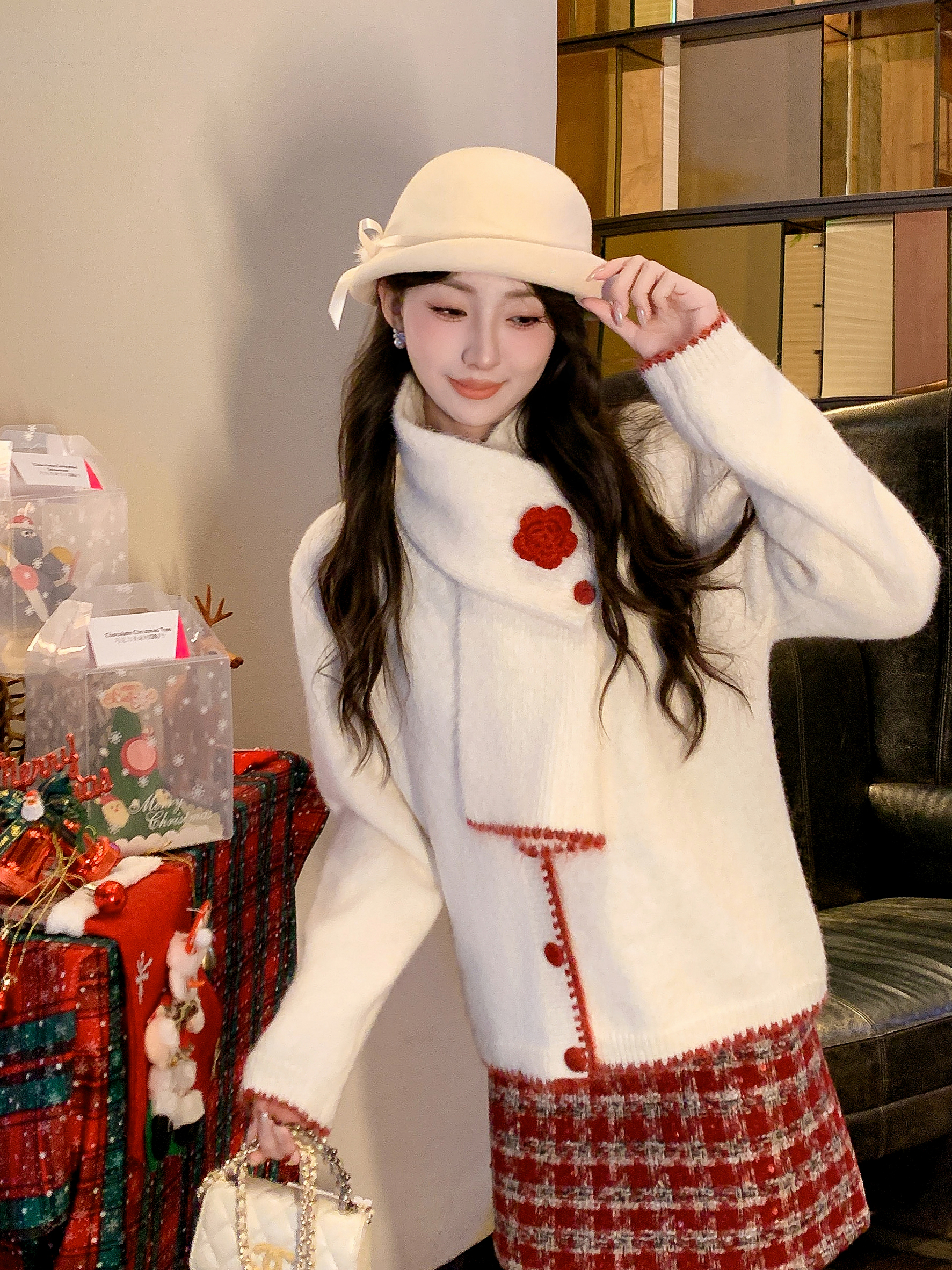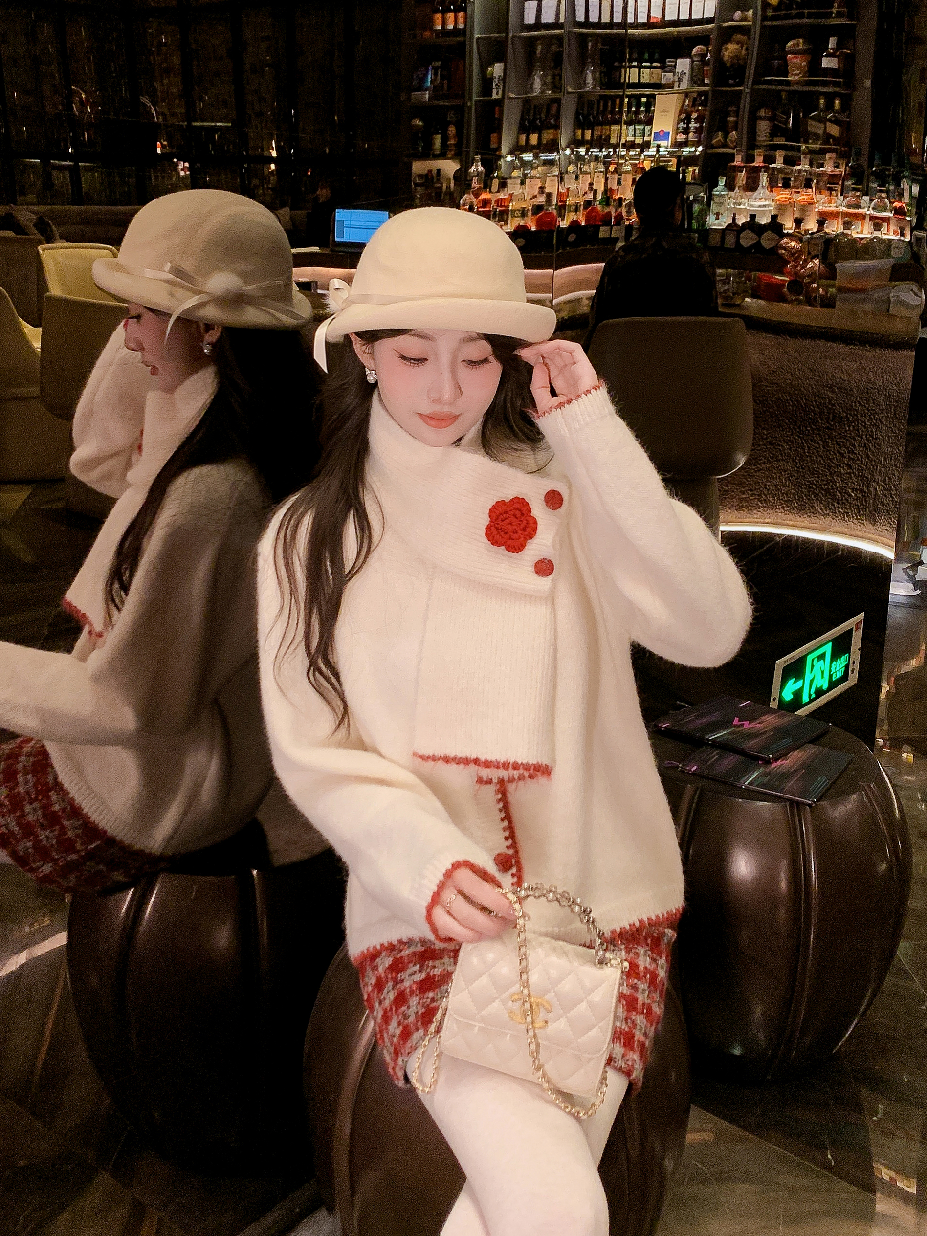 张心子【踏雪新年】氛围感围巾撞色毛衣开衫 U2601019