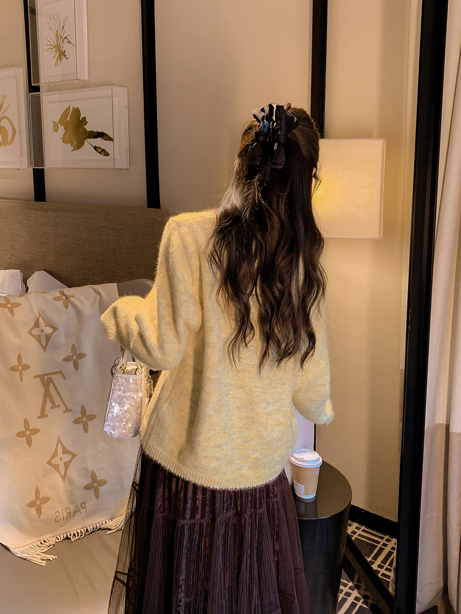 张心子【流光梦境】V领蕾丝拼接毛衣开衫 U2509009