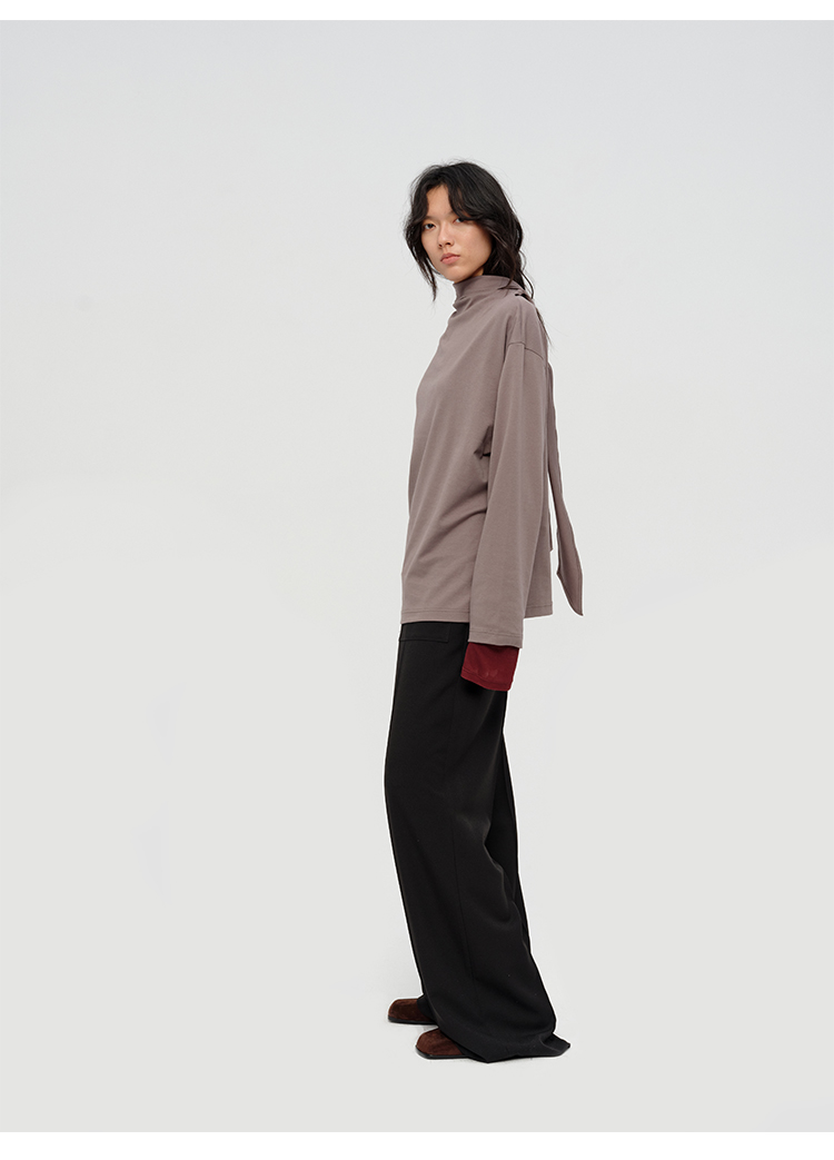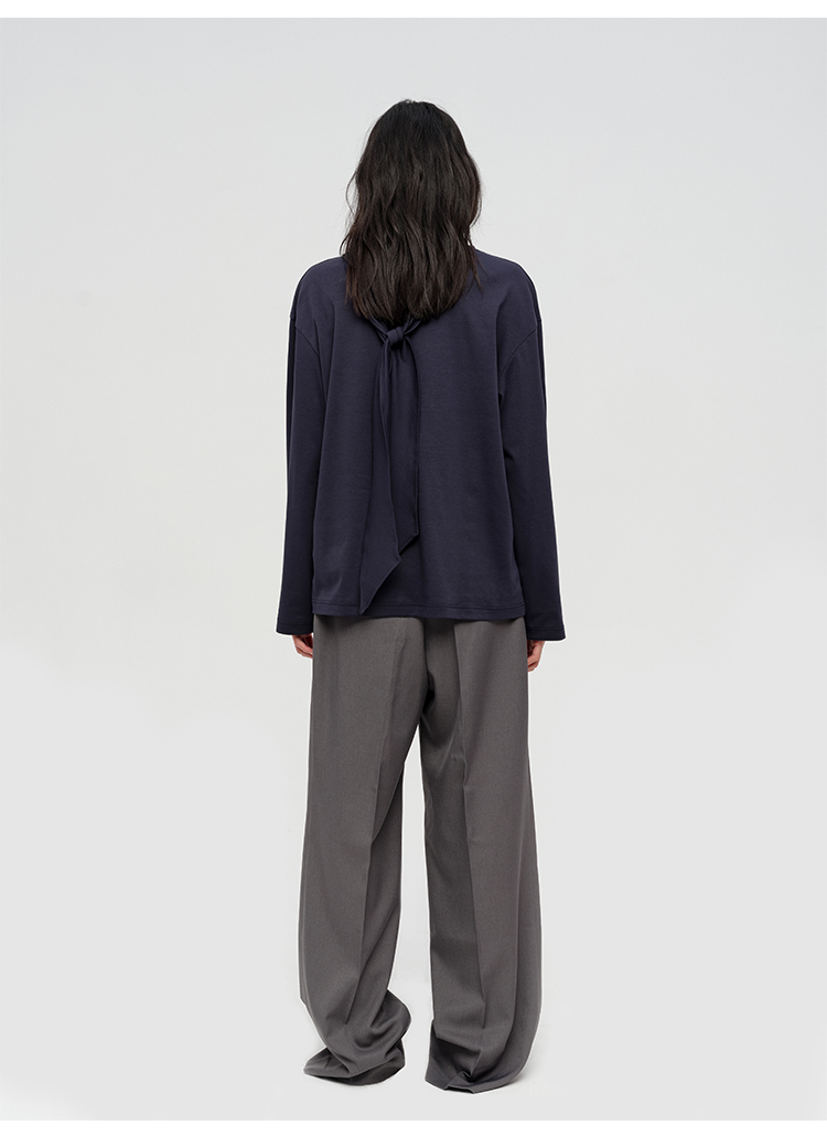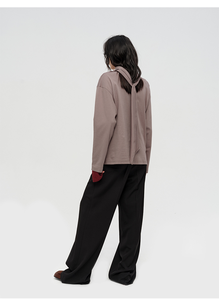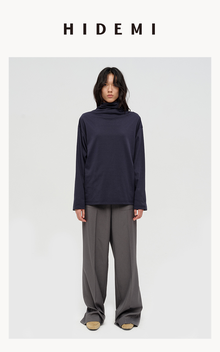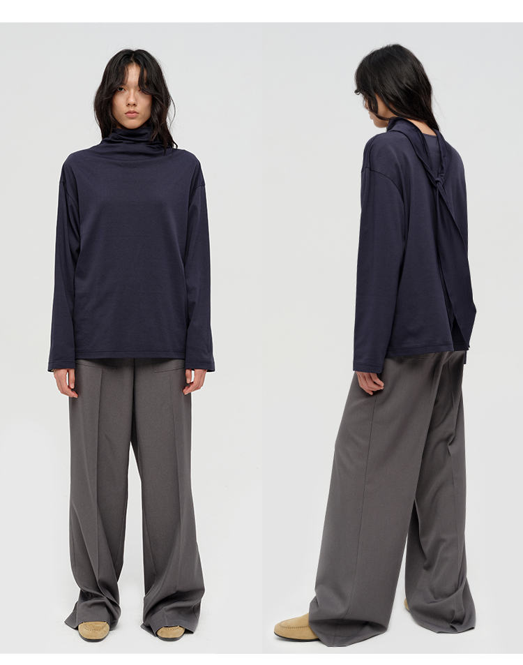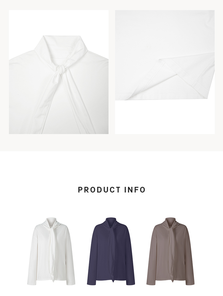 HIDEMI 极简设计感飘领多穿围巾式高密自然棉廓形长袖上衣T恤 白色/藏蓝色/炭灰色