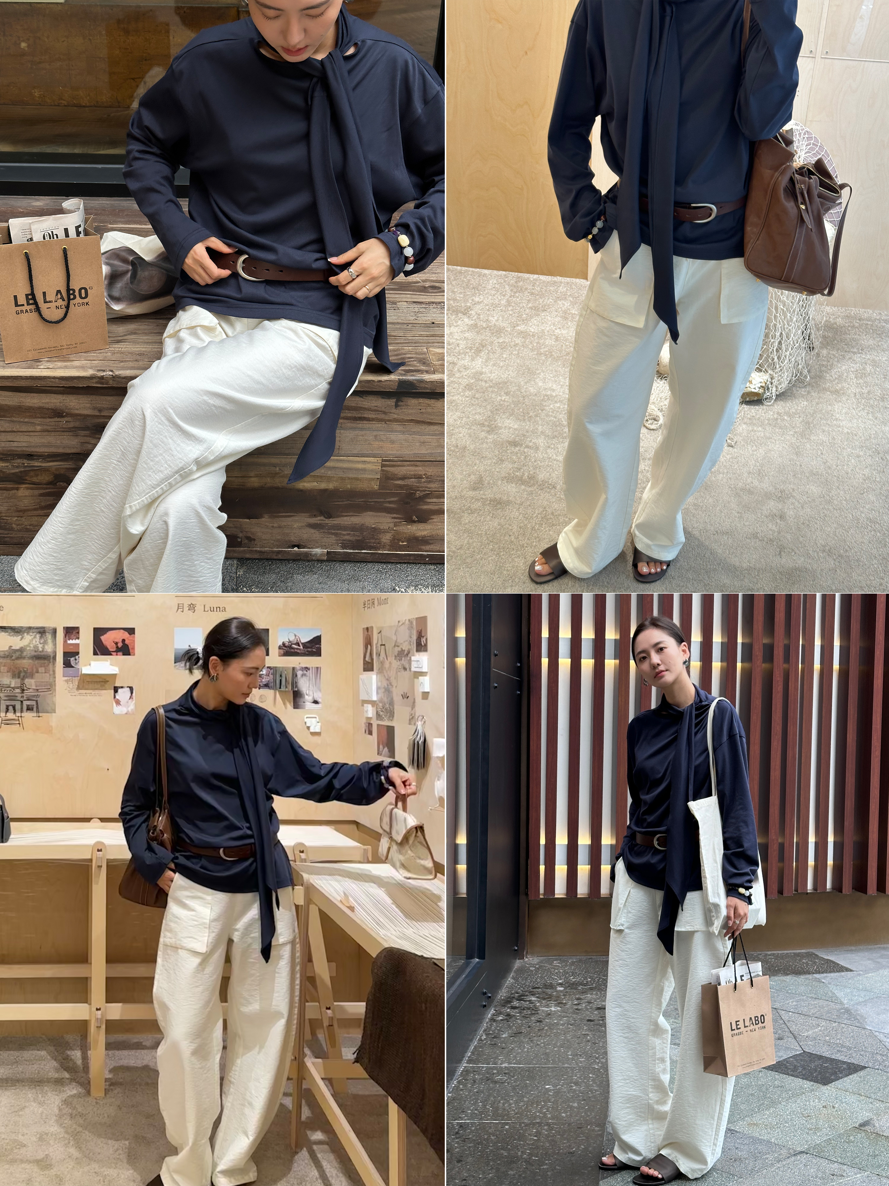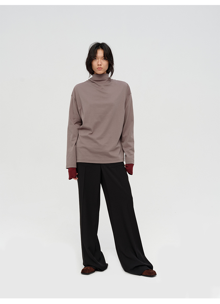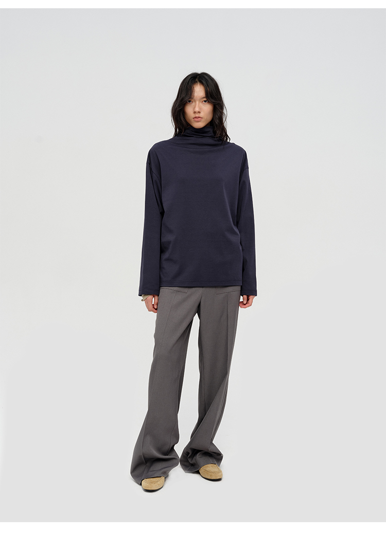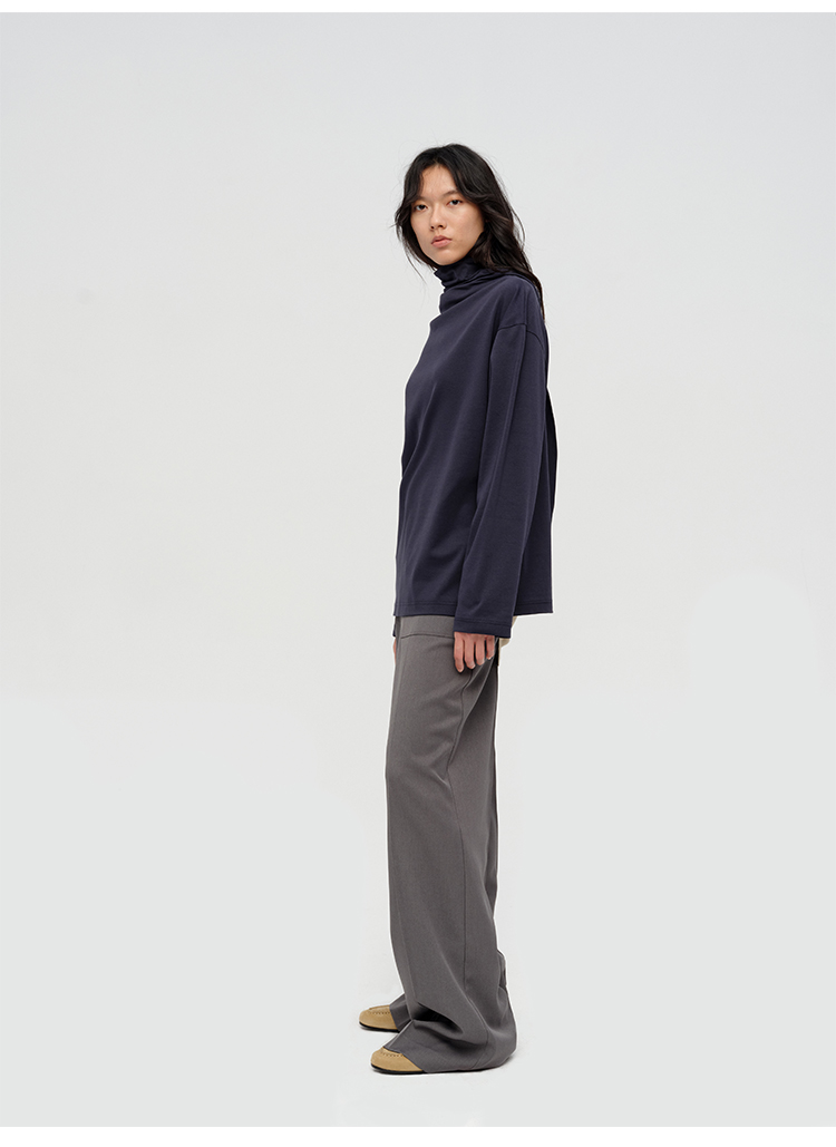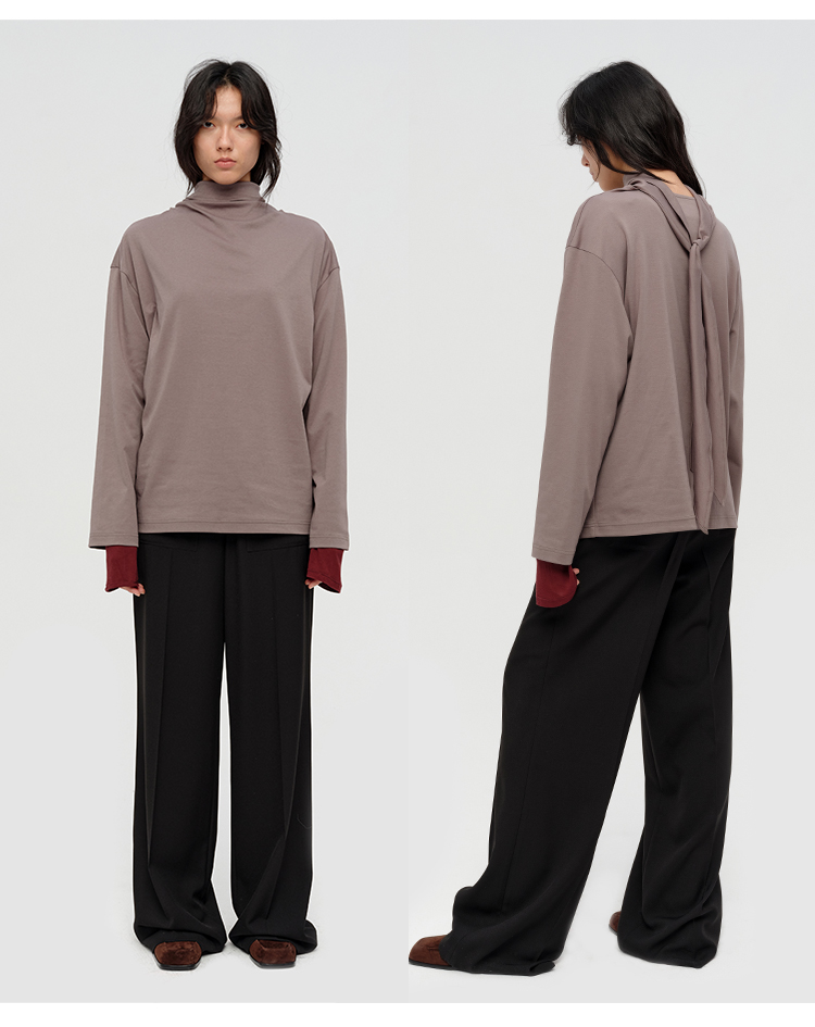 HIDEMI 极简设计感飘领多穿围巾式高密自然棉廓形长袖上衣T恤 白色/藏蓝色/炭灰色