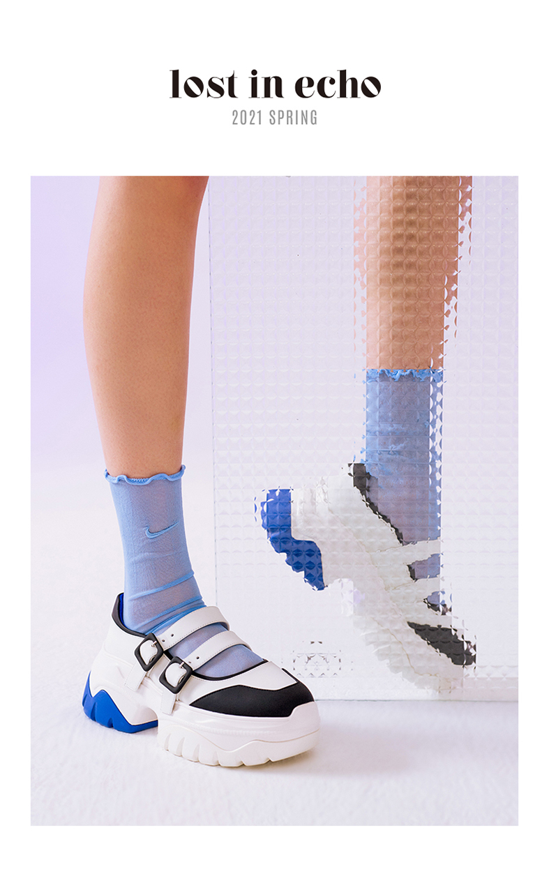 lost in echo 设计师春夏新款 双条带气眼运动玛丽珍单鞋