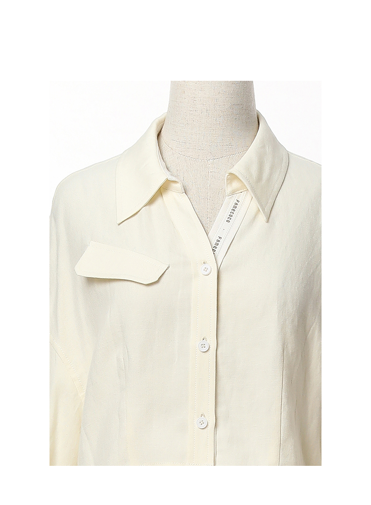 Famecoco范可儿短款落肩开身衬衫女夏季短袖设计感衬衣FAC3BH024