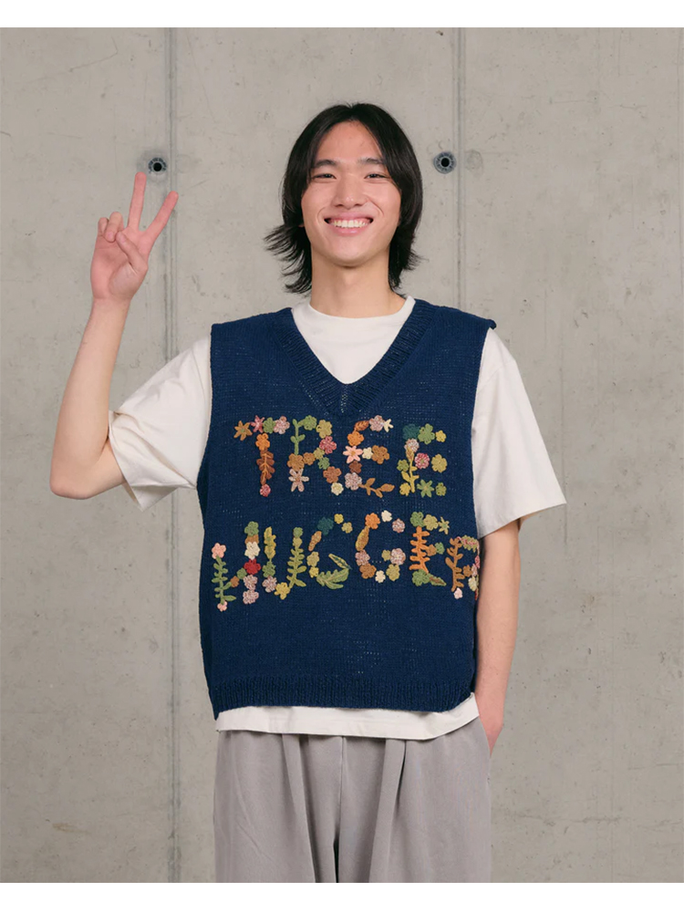 Story mfg PARTY KNIT VEST 男女款手工编织刺绣天然染色纯棉马甲