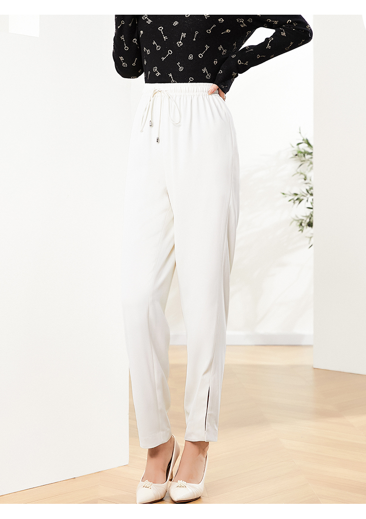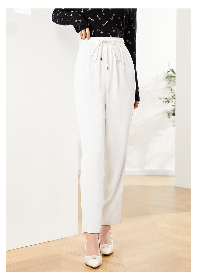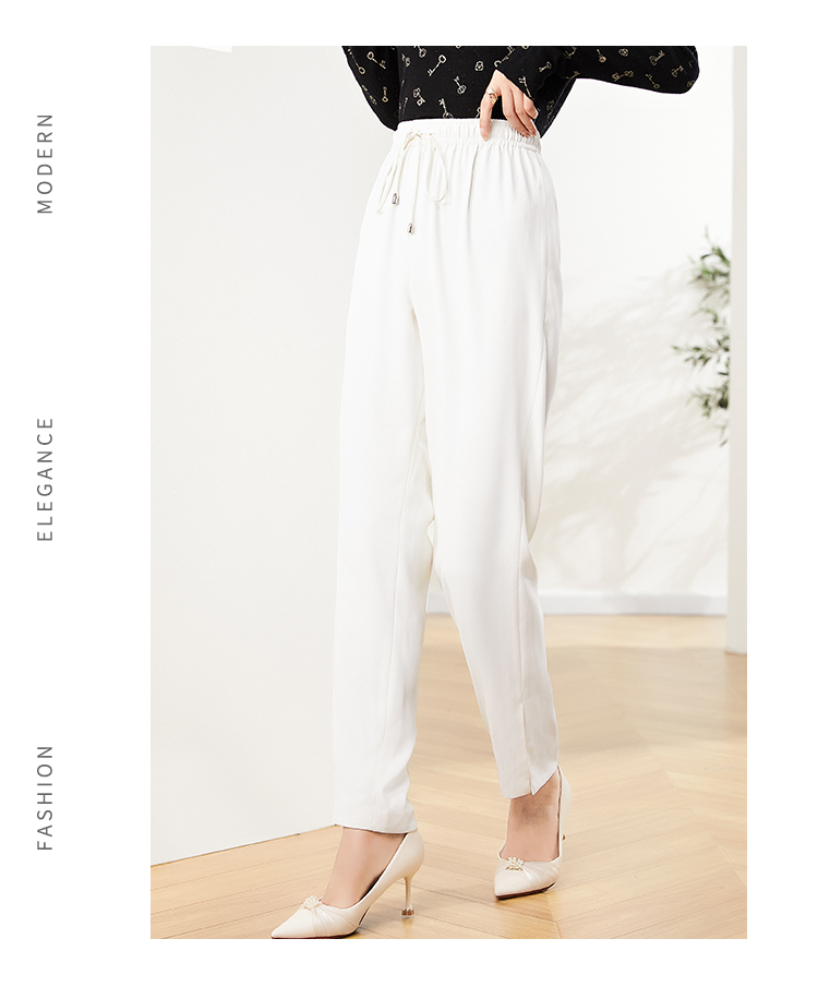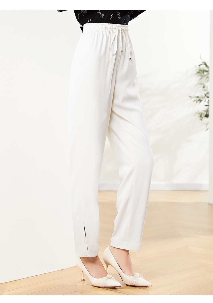 佐尔美2023新款 气质百搭抽绳松紧腰白色长裤E13KC47