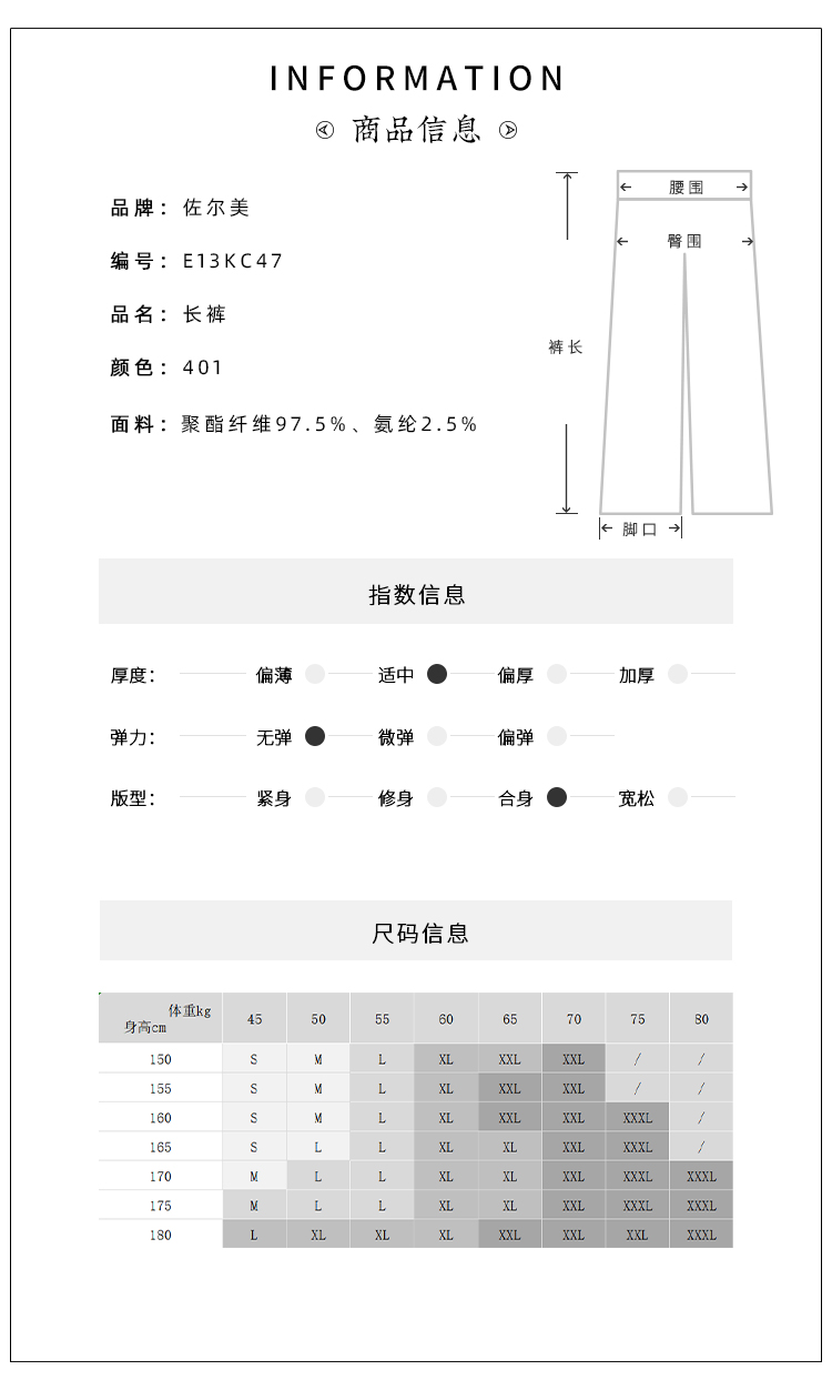 佐尔美春季新款 气质简约百搭长裤女E21KC08