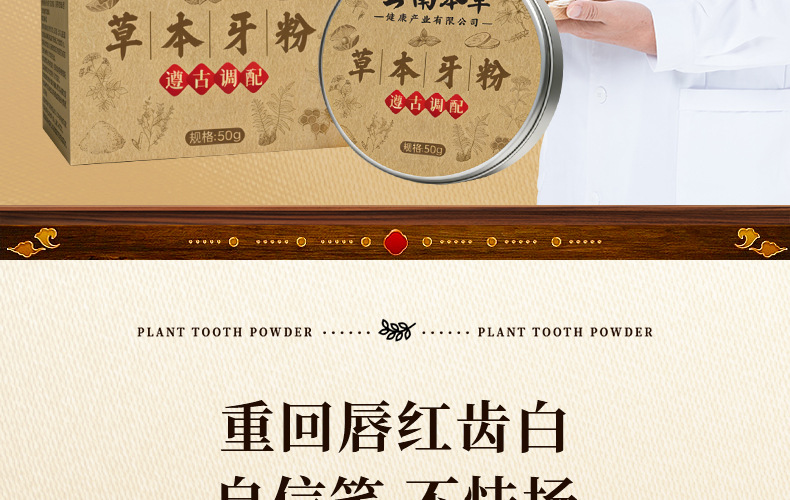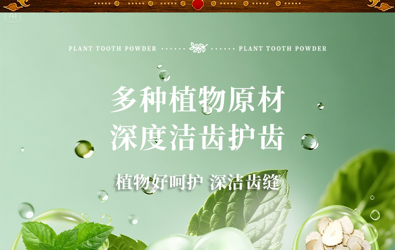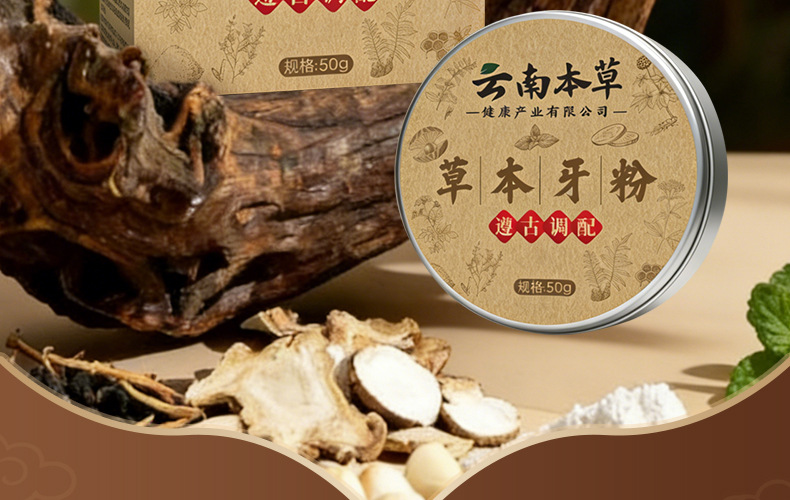 草本牙粉 植物配方去渍白牙草本固齿牙粉青盐去黄深层清洁
