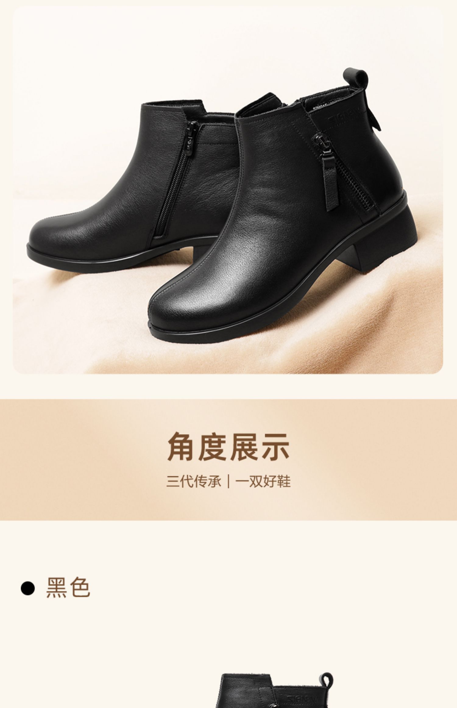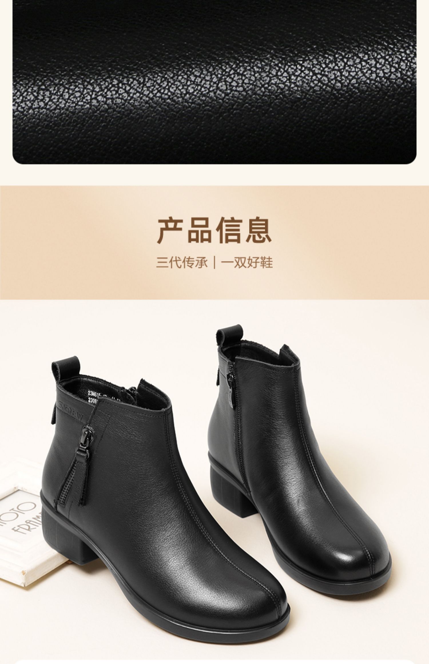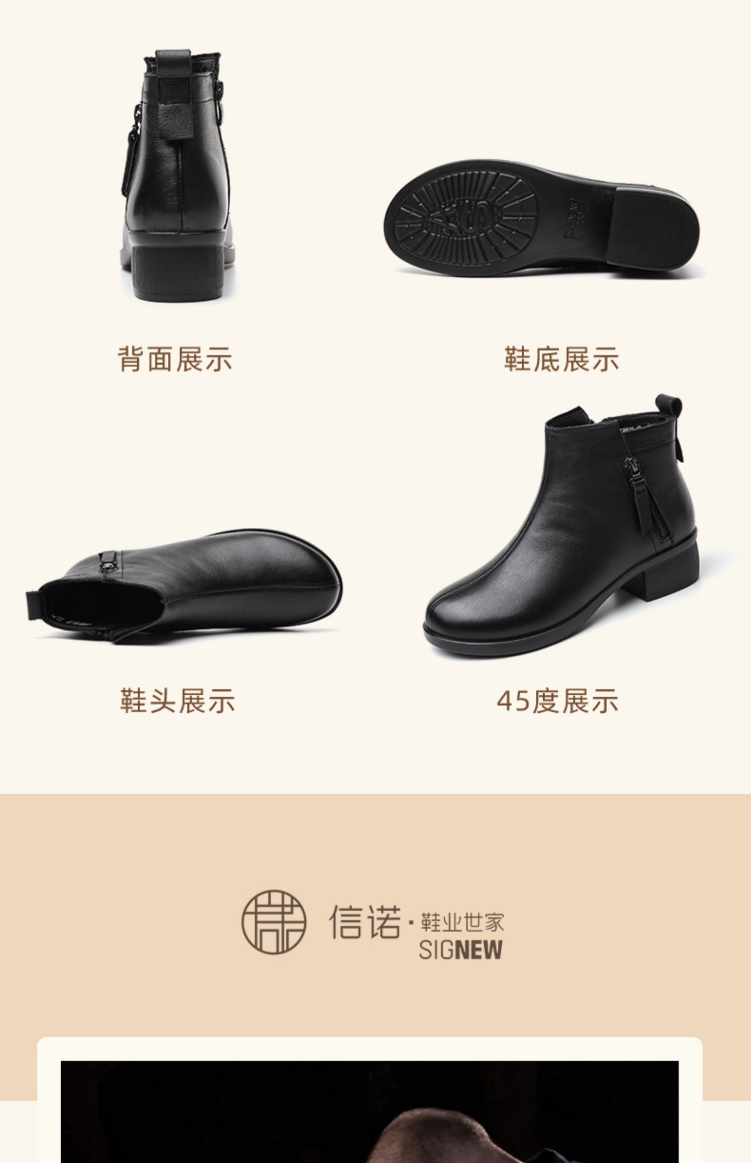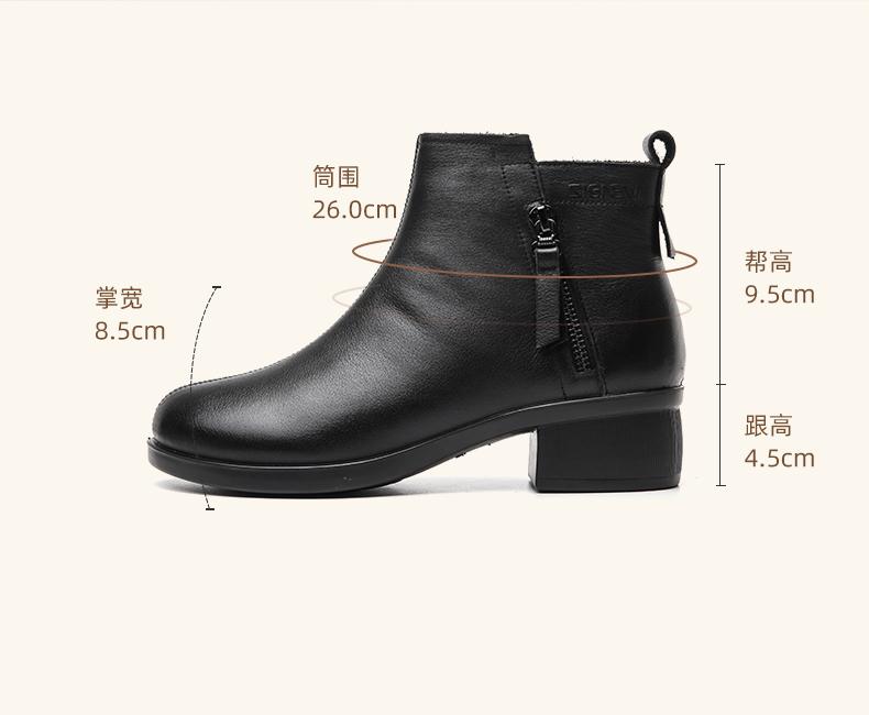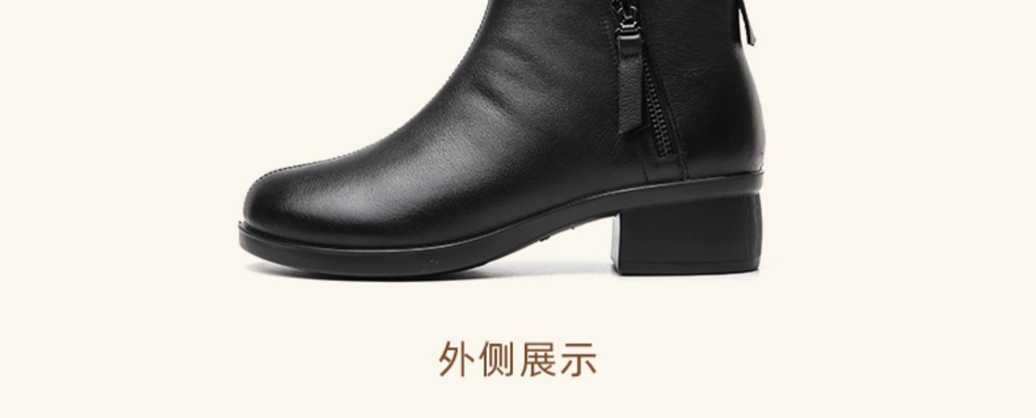 信诺真皮软底妈妈短靴中老年棉鞋加绒女鞋子2023秋冬新款中年皮鞋23M615-1D