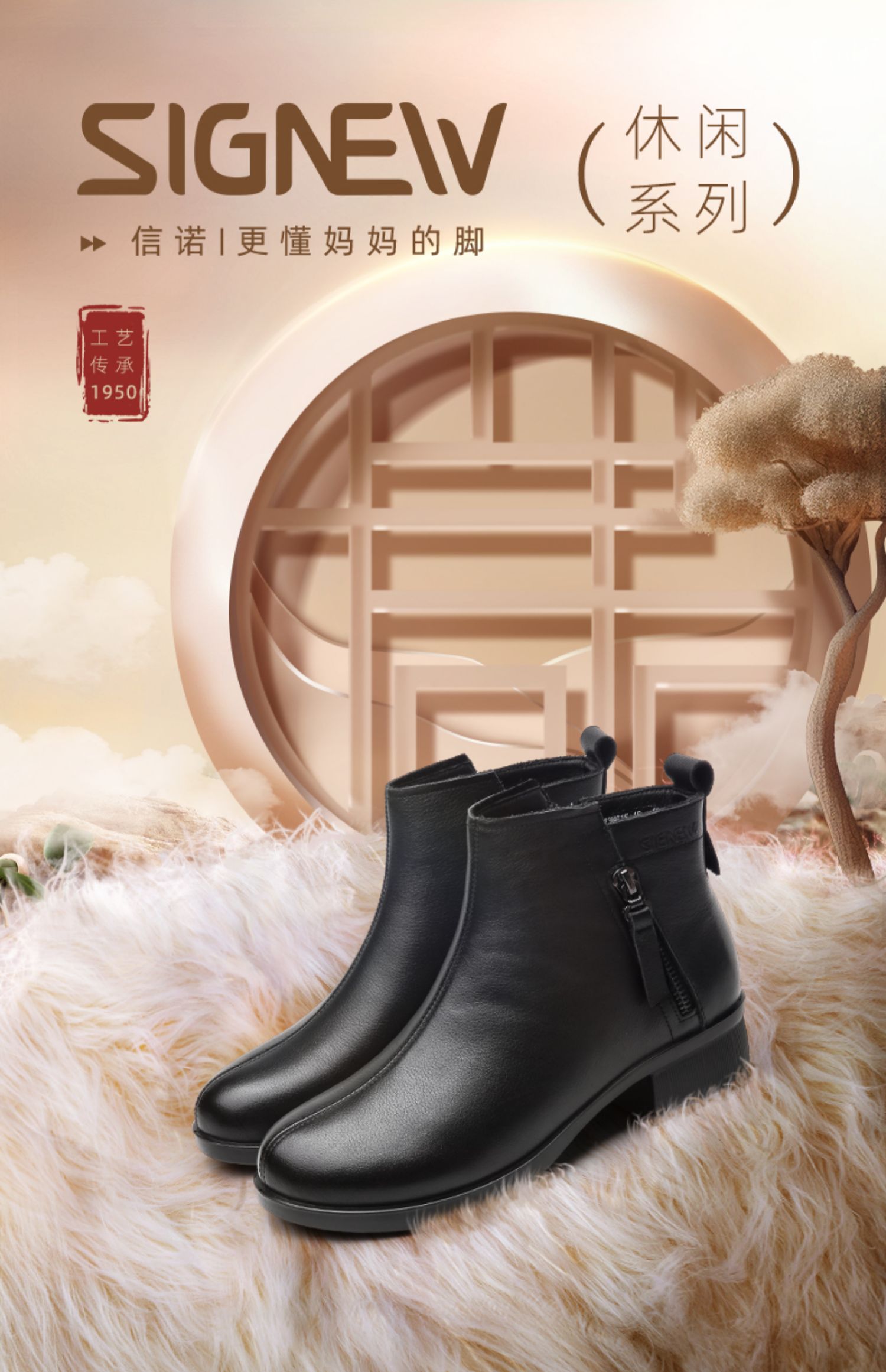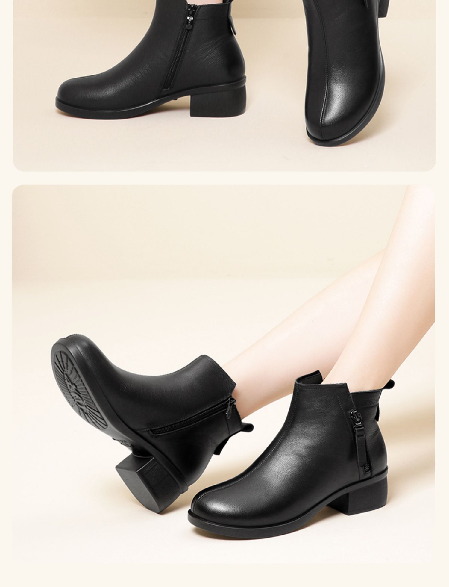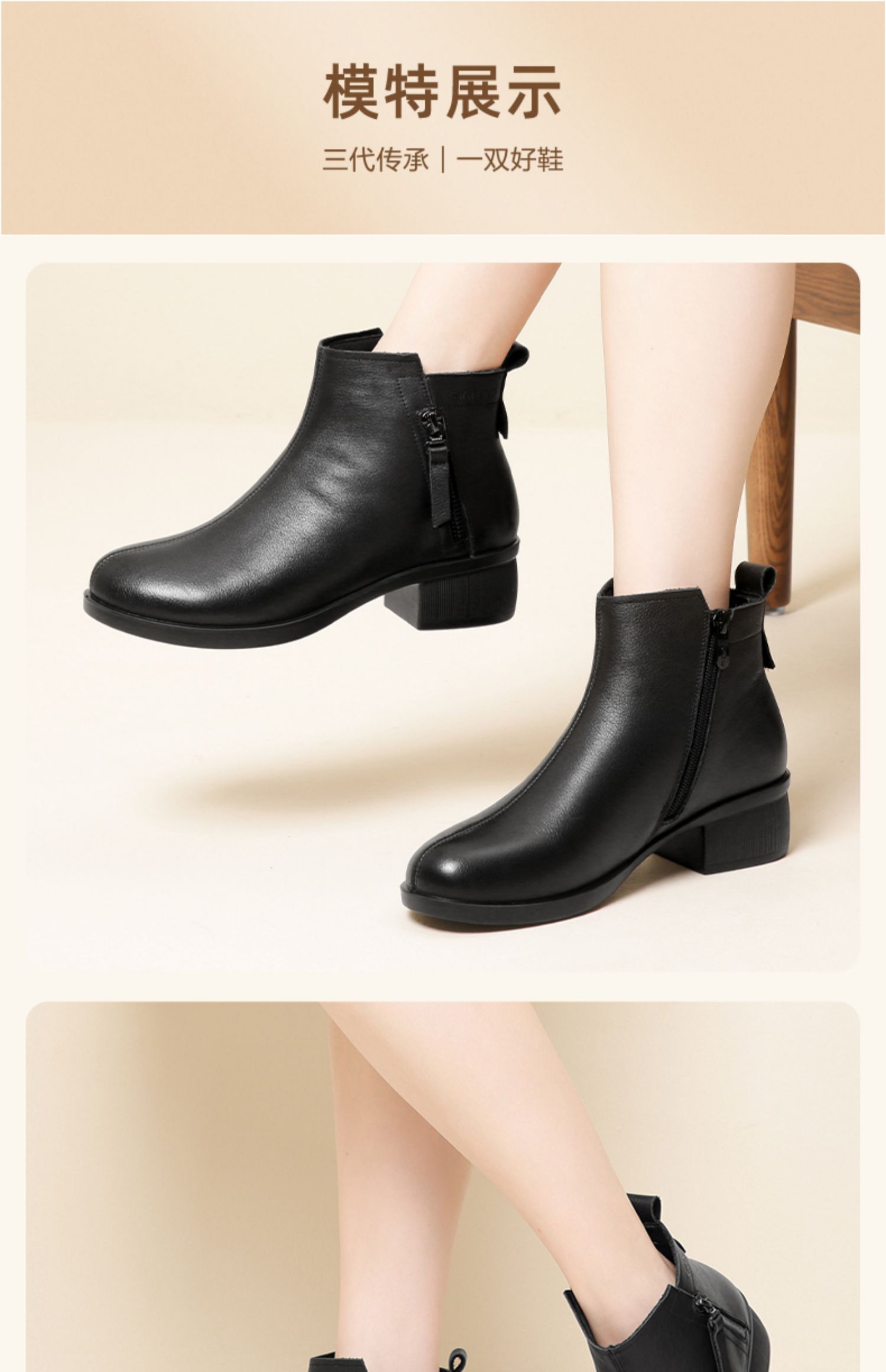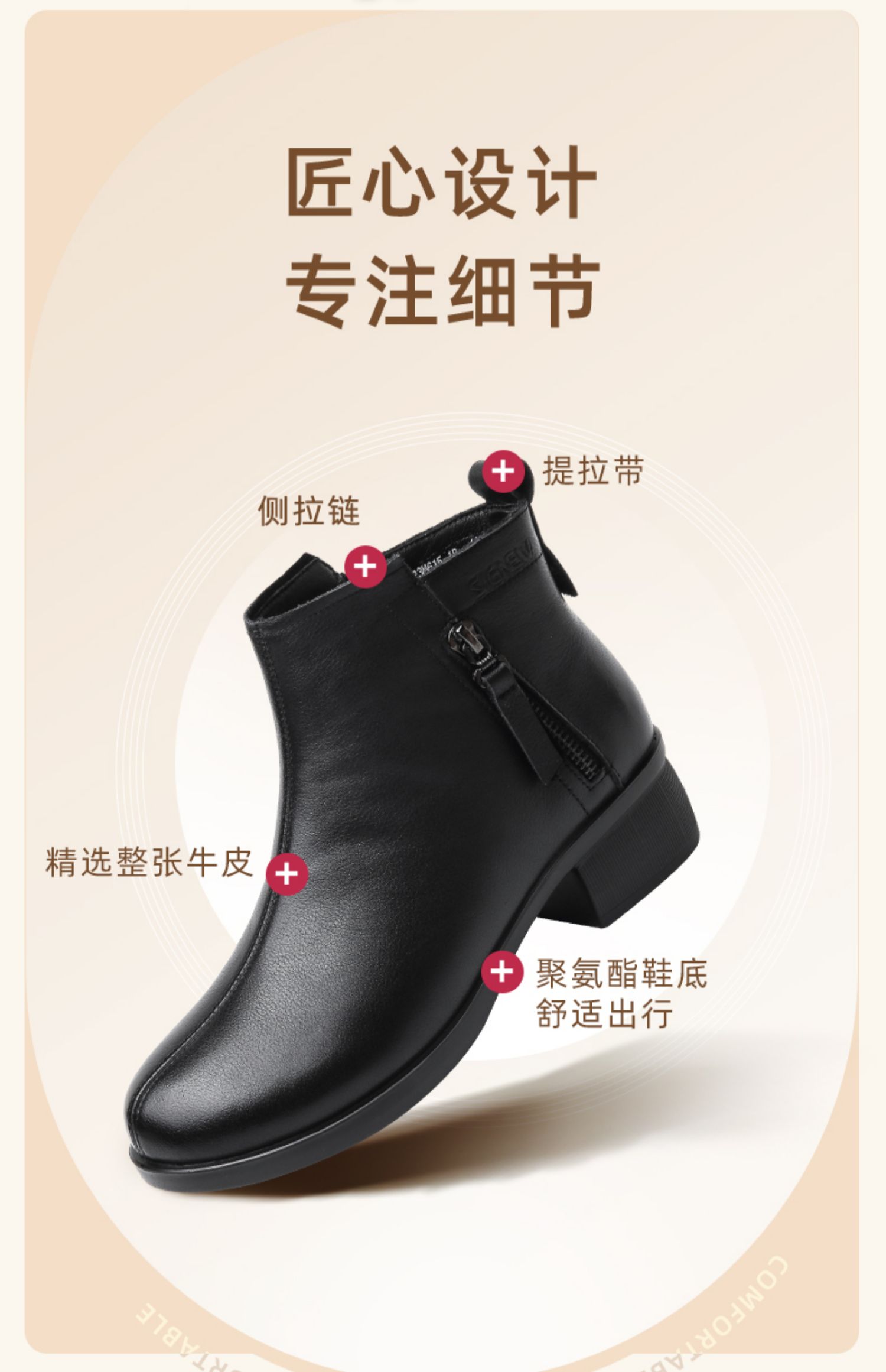 信诺真皮软底妈妈短靴中老年棉鞋加绒女鞋子2023秋冬新款中年皮鞋23M615-1D
