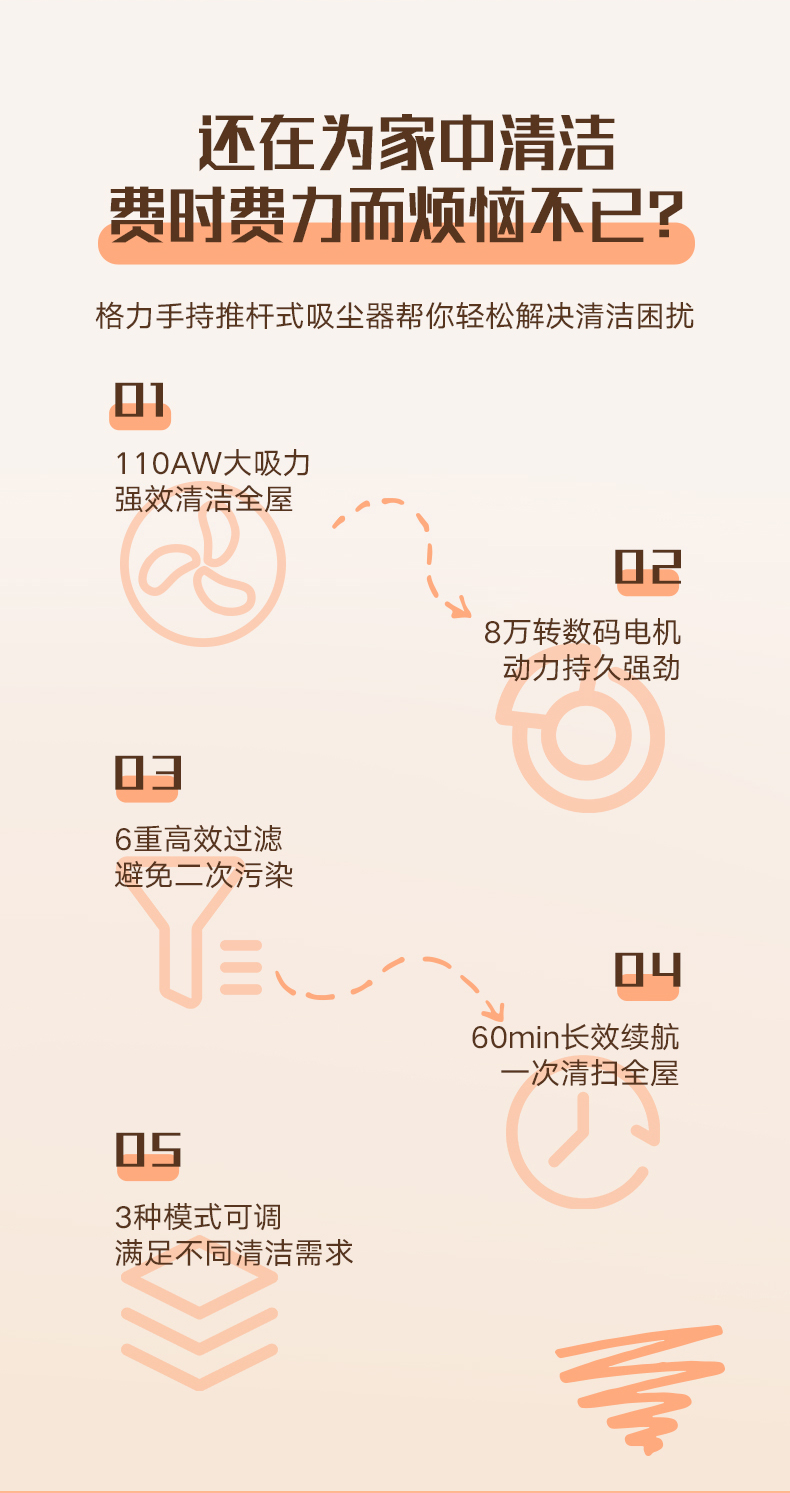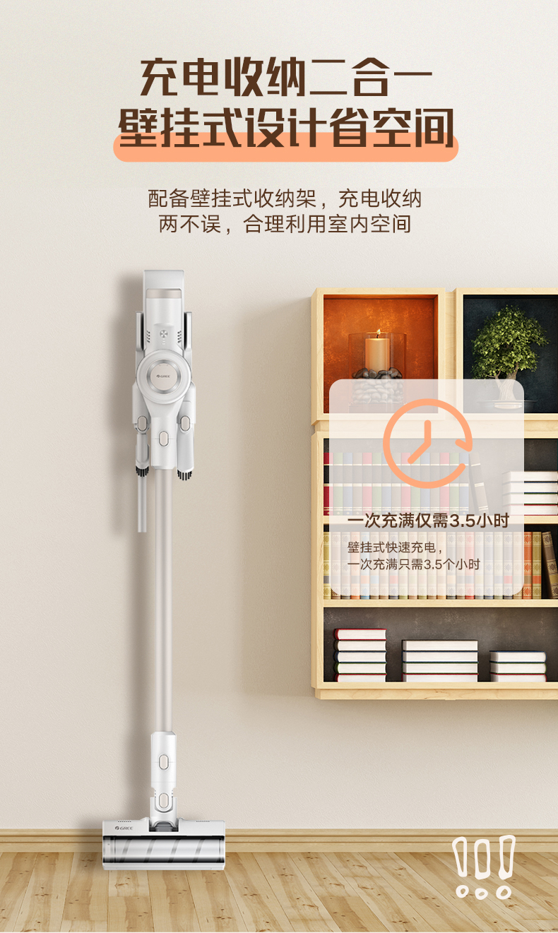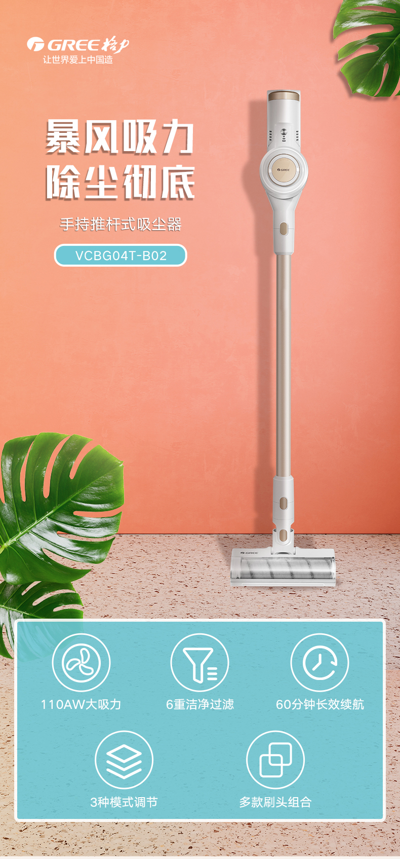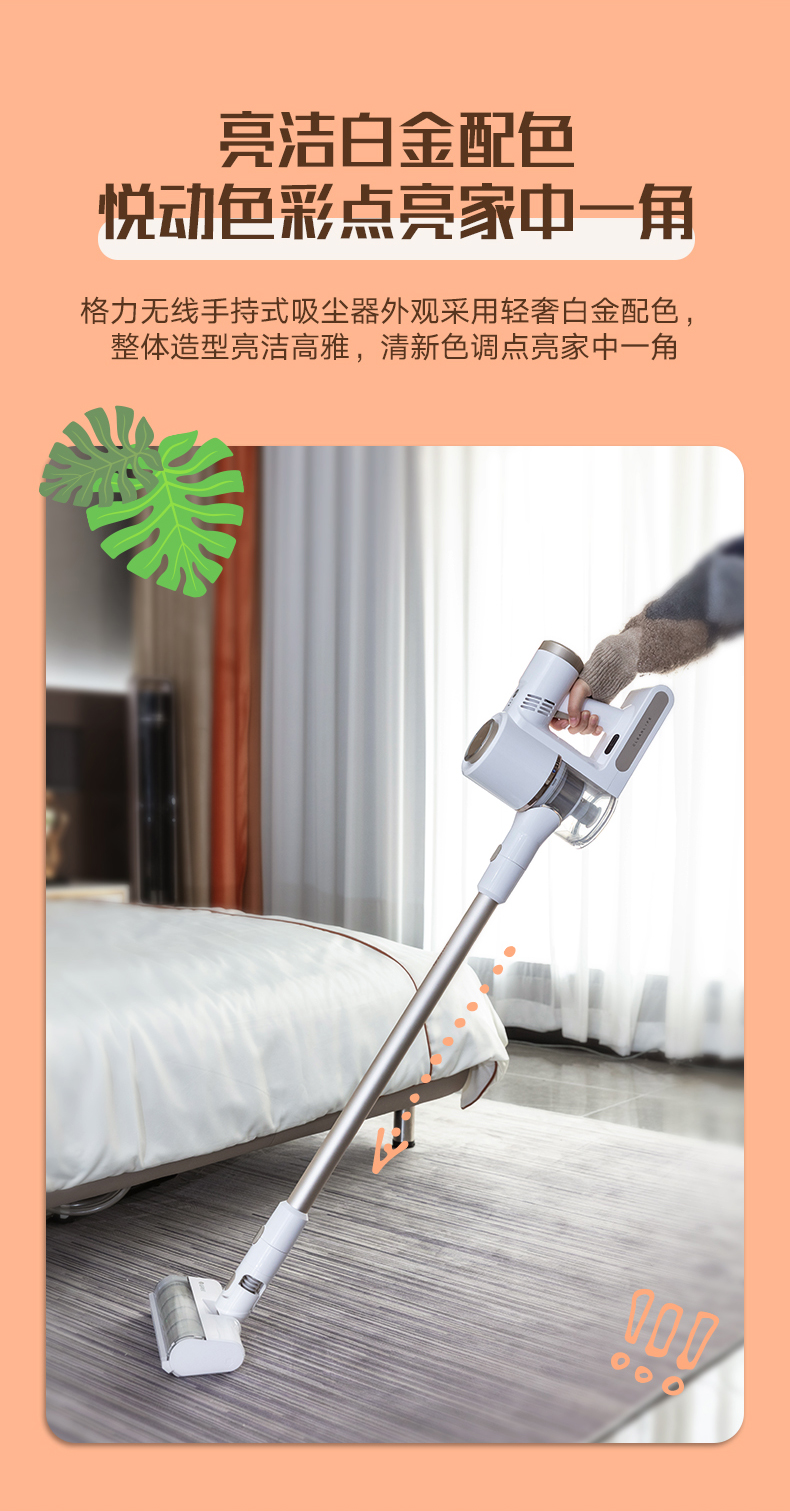 GREE格力 吸尘器 VCBG04T-B02 手持推杆式吸尘器 澎湃吸力 轻便无线 暖阳白色