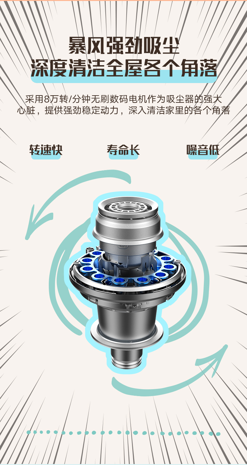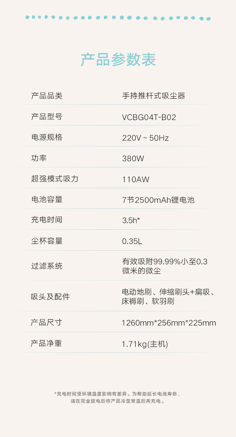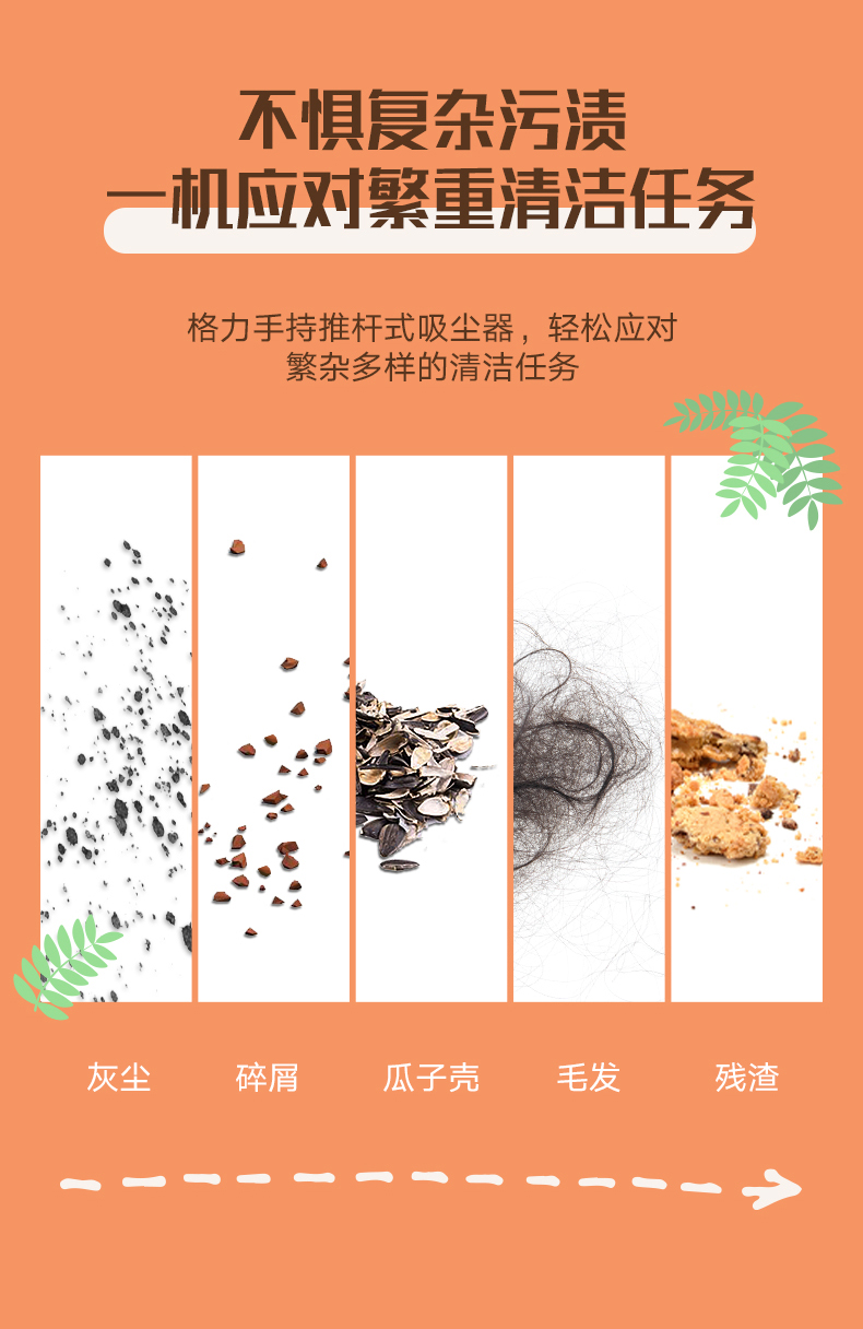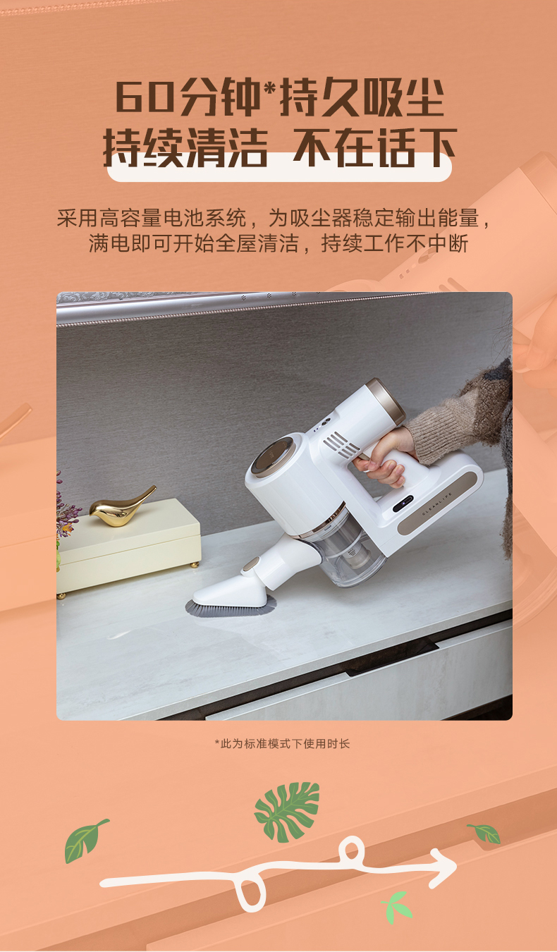 GREE格力 吸尘器 VCBG04T-B02 手持推杆式吸尘器 澎湃吸力 轻便无线 暖阳白色