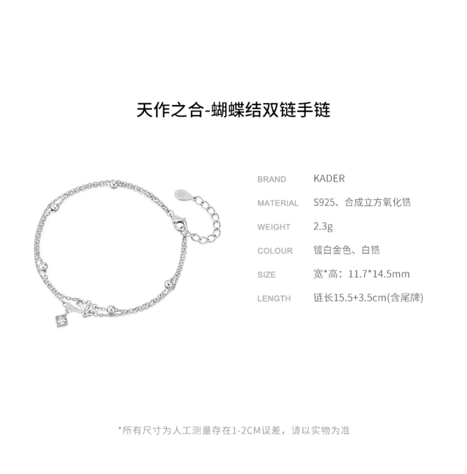 KADER蝴蝶结纯银手链女生ins小众设计高级轻奢生日礼物2022年新款