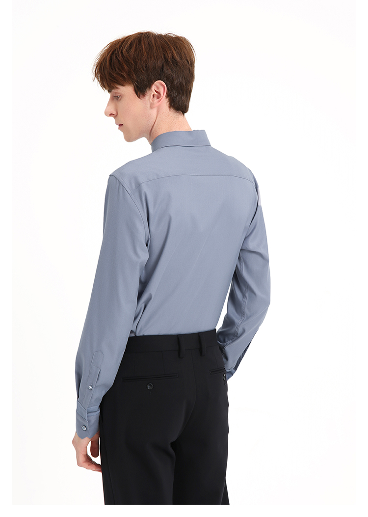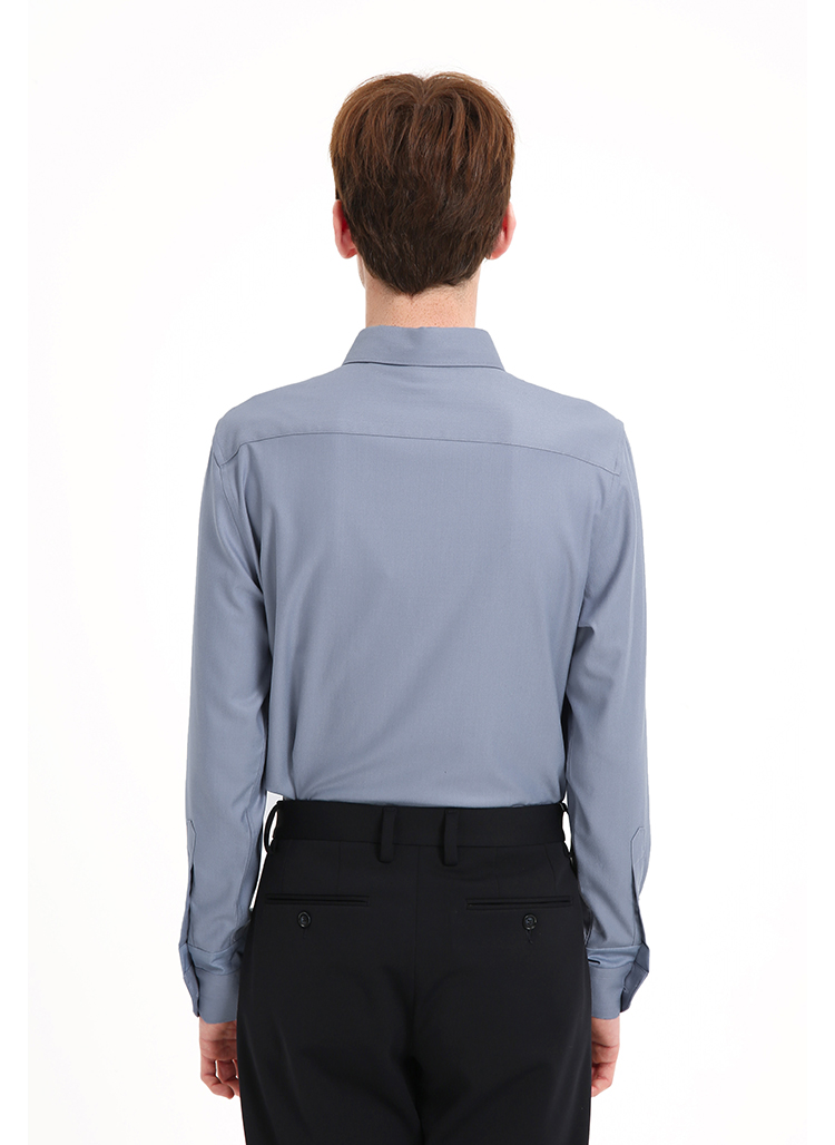 callisto蓝色棉亚麻混纺休衬长袖 STCSL079C