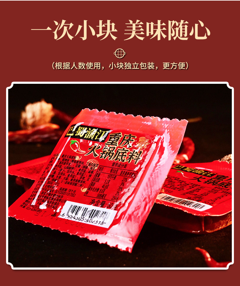 【重庆正宗,麻油牛油火锅底料】激活味蕾甄选醇香牛油慢火熬制,麻辣鲜香层次感分明好吃不上火,一料多用小块包装渝江单人份家四川麻辣干锅串串小块食材QQ