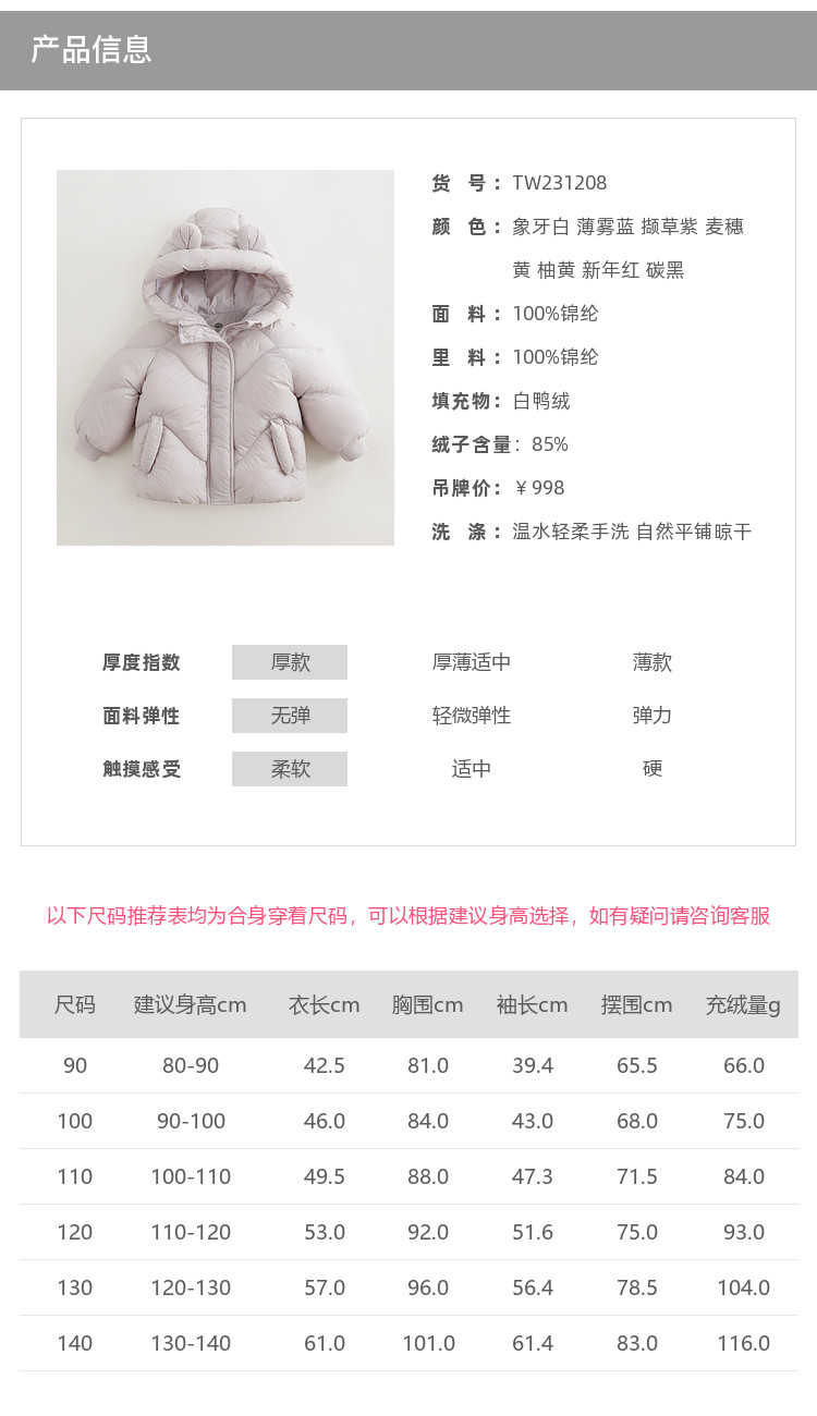 【马克珍妮 芦芙】三防超轻加厚小熊耳朵保暖羽绒服 231208