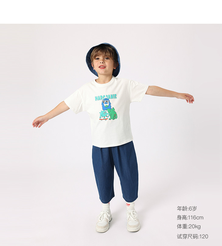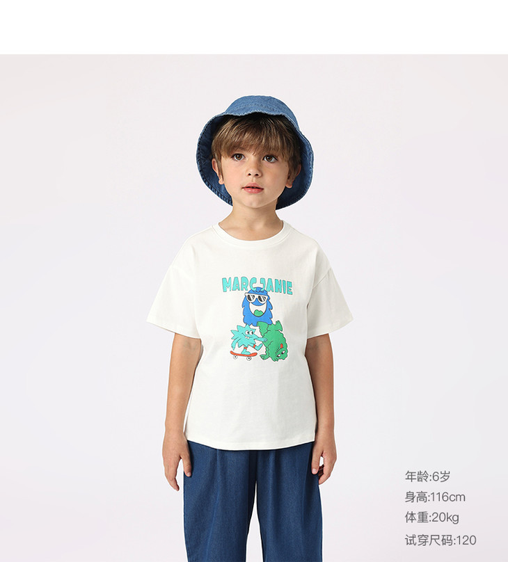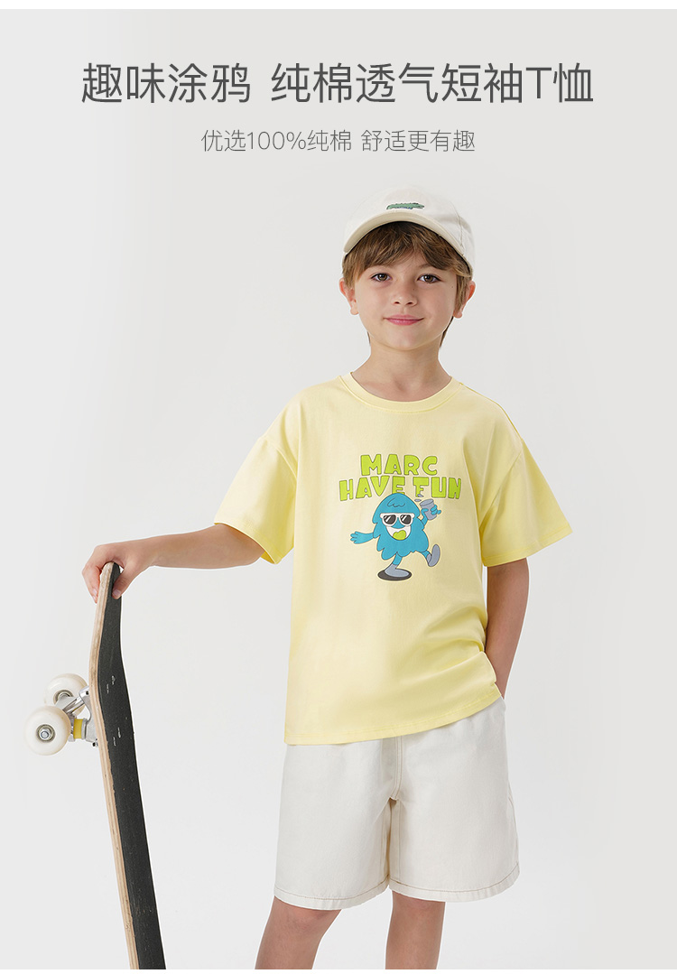 马克珍妮夏装男童手绘涂鸦纯棉休闲短袖T恤230700