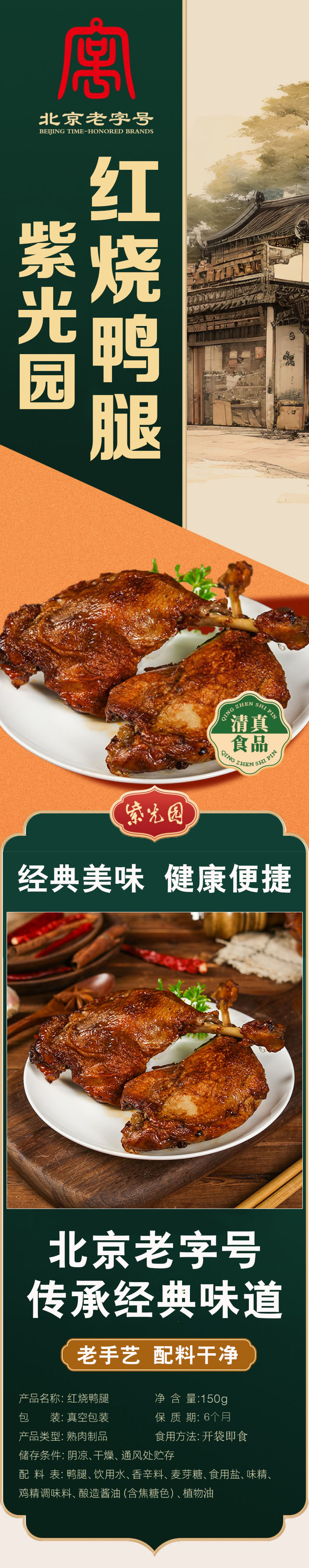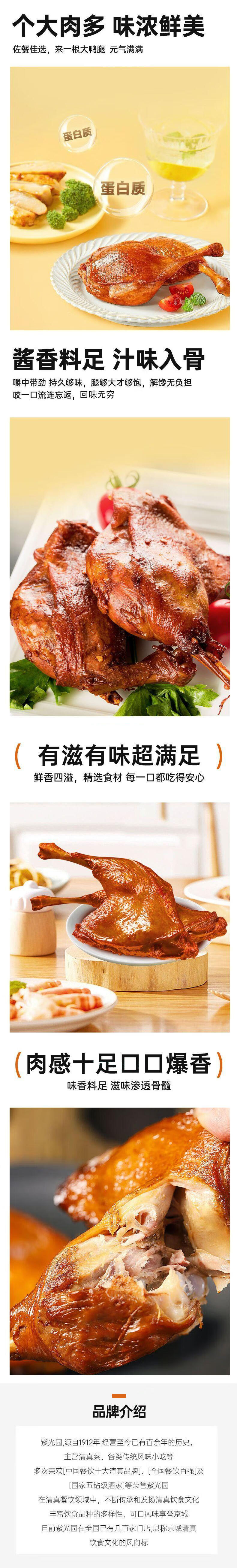 紫光园红烧鸭腿,20袋组合,北京老字号,精选新鲜优质大鸭腿,个大肉多,肉质紧实,传统天然香辛料配方,古法工艺制作,营养丰富,酱香浓郁,肉香四溢,滋味鲜美,好吃不塞牙,老人孩子都爱吃M