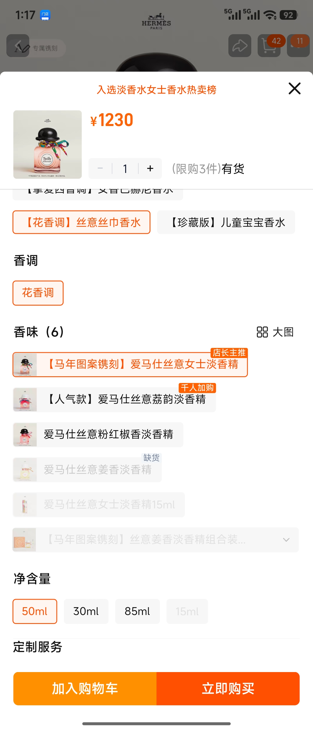 Hermes爱马仕Twilly丝巾丝带女士浓香香水,香水名称的灵感来自标志性的窄丝绸围巾,由调香师Christine Nagel调制,是一款乐观,活泼,年轻,新鲜却又不普通的花香。有货的,喜欢就下单.前调是生姜; 中调是晚香玉; 基调是檀木