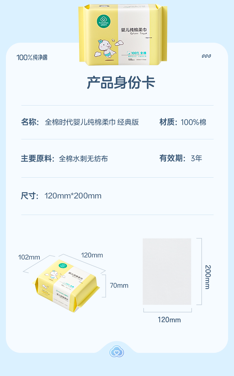 全棉时代 棉柔巾婴儿棉柔巾纯棉洗脸巾一次性洗面巾手帕宝宝擦脸巾干湿两用巾新生儿专用 12*20CM 100抽*6包