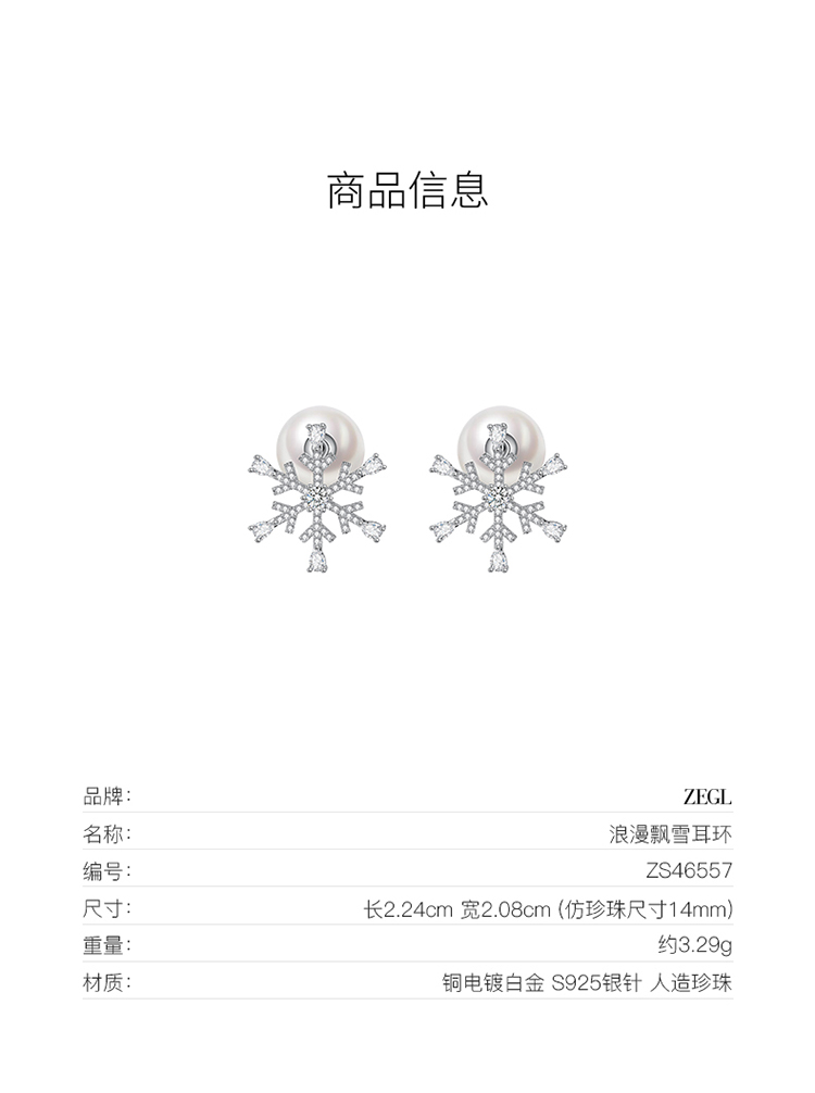 ZEGL法式雪花人造珍珠耳环女2023新款爆款秋冬高级感耳钉银针耳饰
