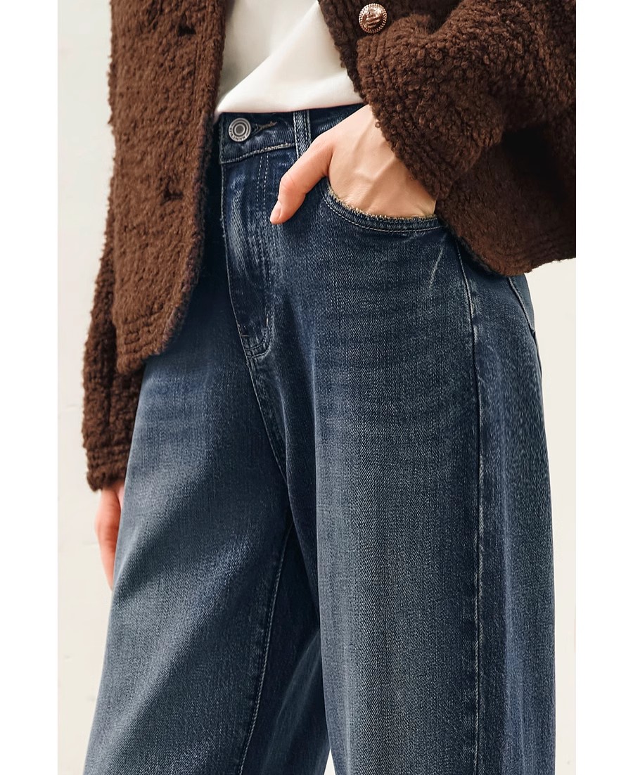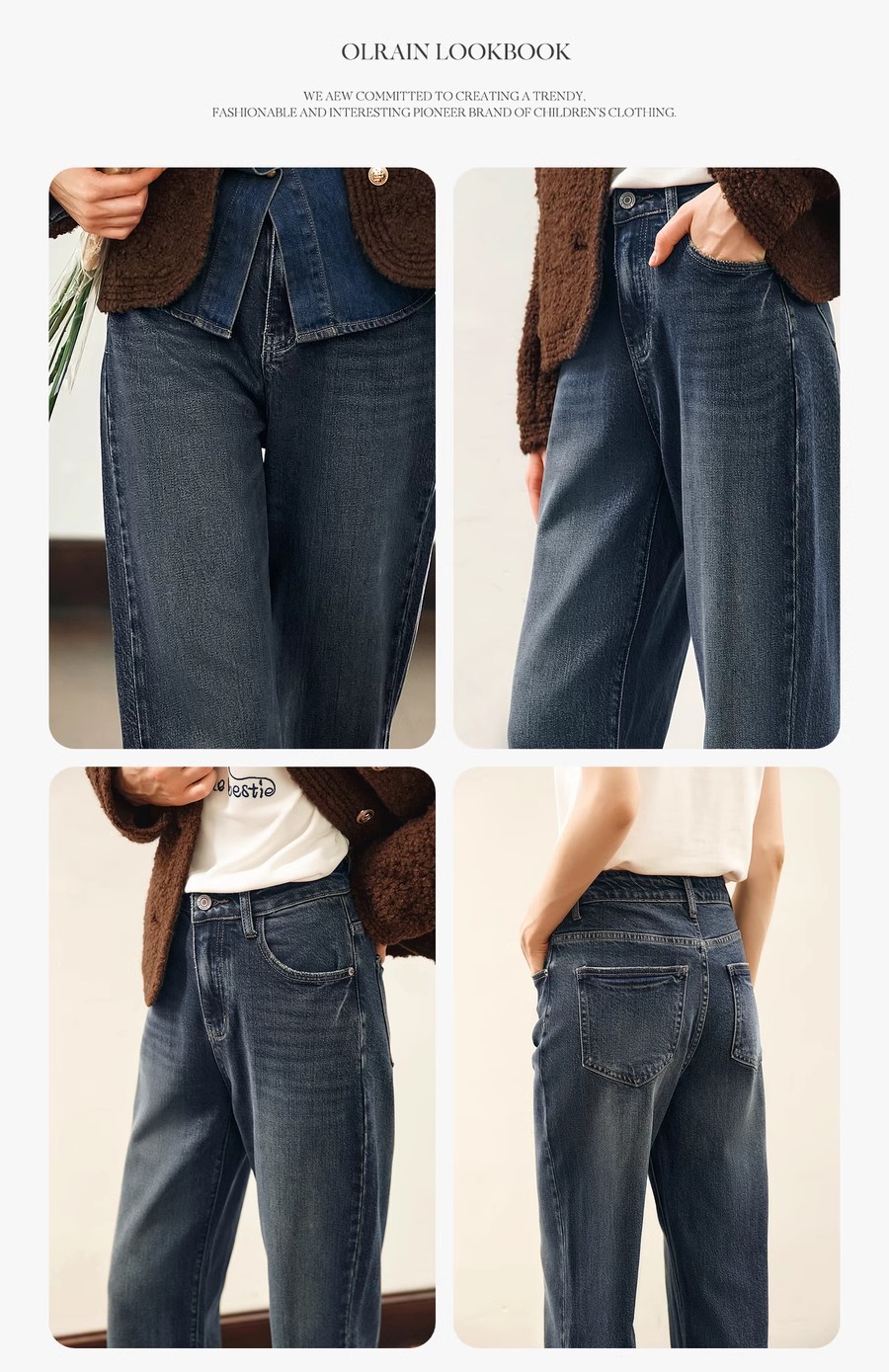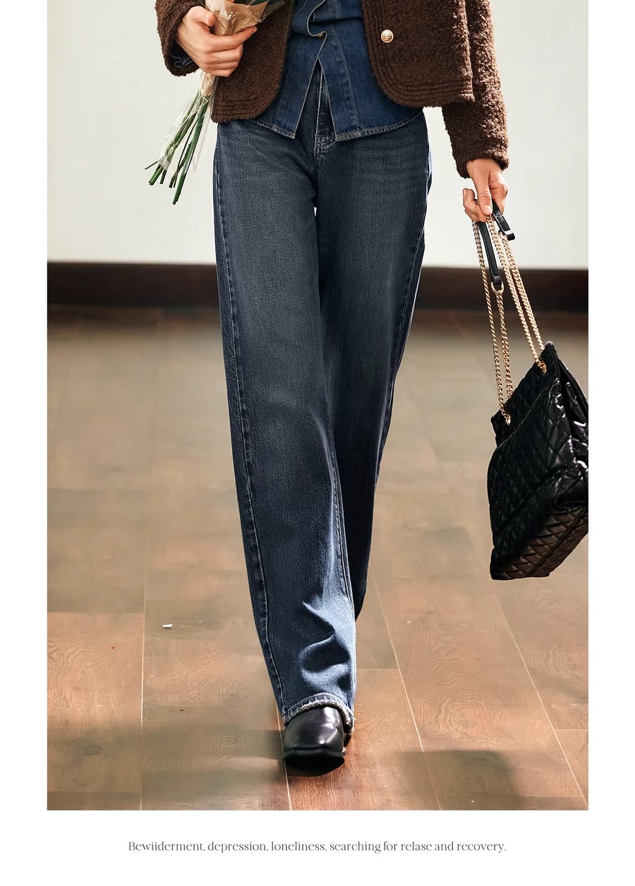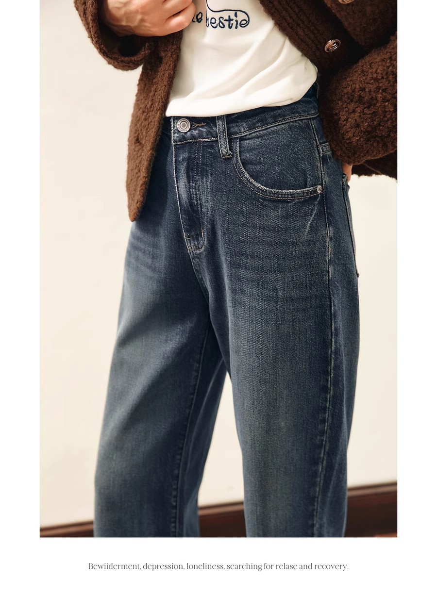 OLrain欧芮儿水泥灰牛仔裤女冬季2024年新款慵懒风窄版休闲阔腿裤