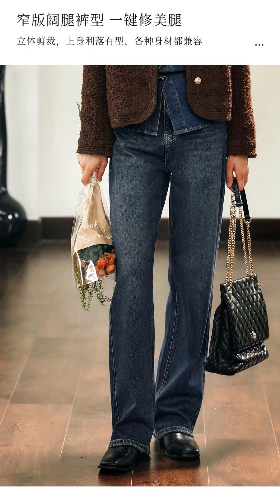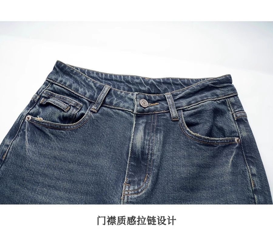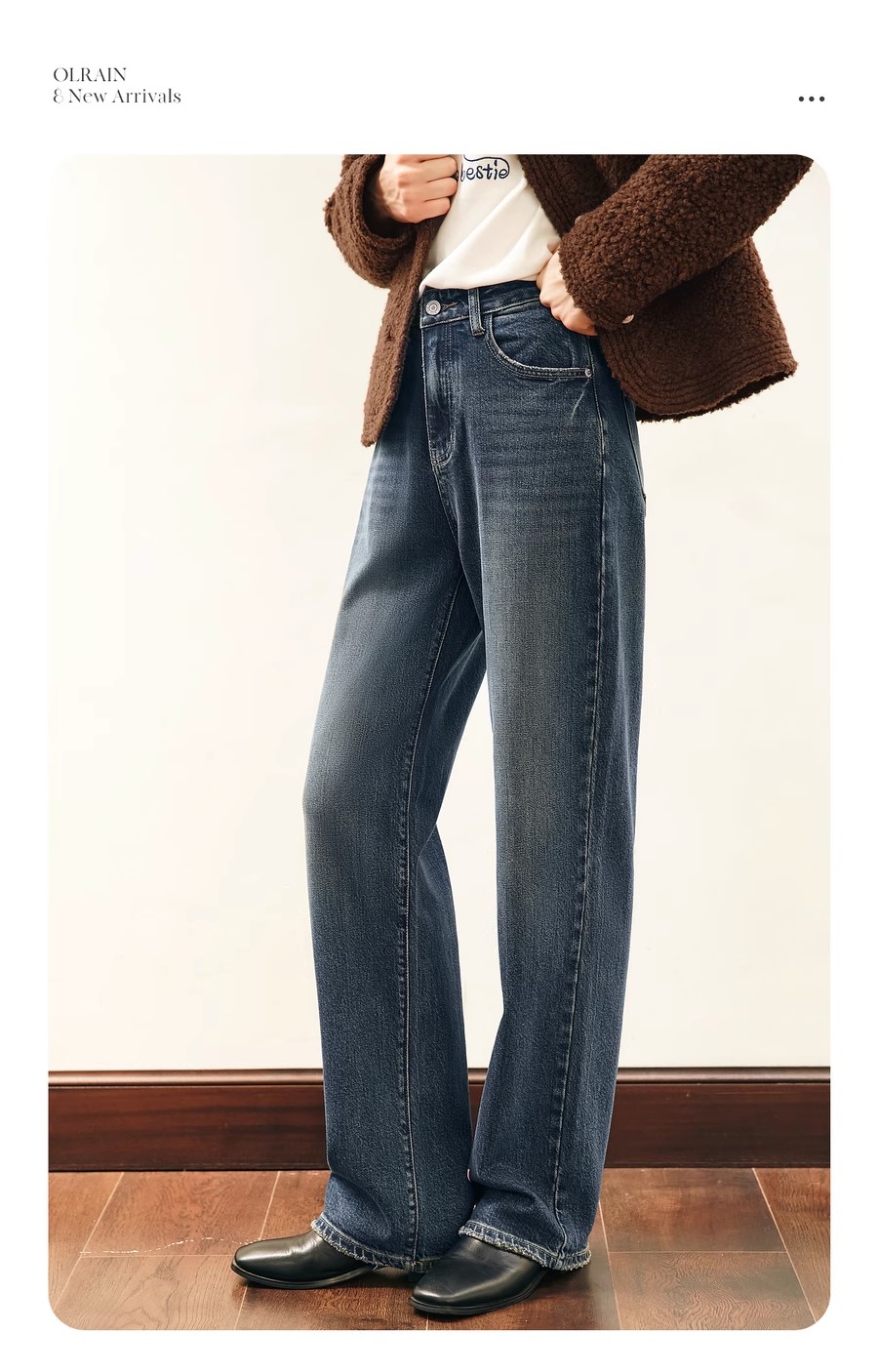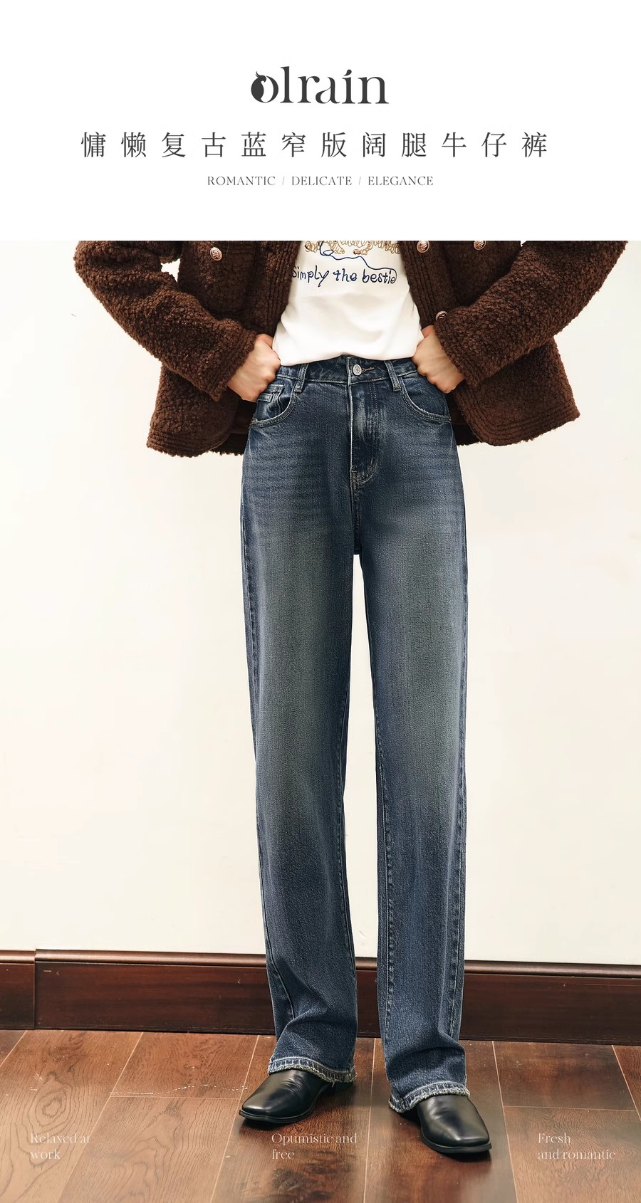 OLrain欧芮儿水泥灰牛仔裤女冬季2024年新款慵懒风窄版休闲阔腿裤