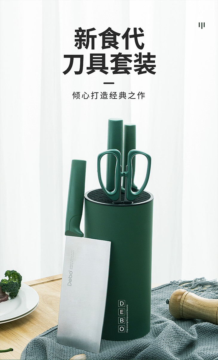 德铂 加尔文不锈钢菜刀剪刀砍骨刀五件套 JIE