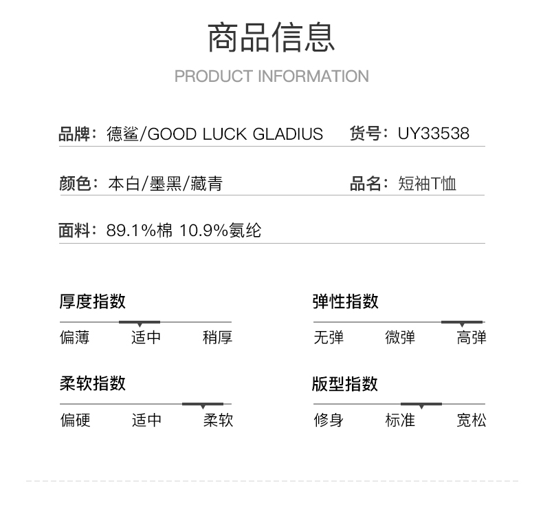 GOOD LUCK/德鲨弹力棉质多彩净色休闲舒适短袖T恤LY13138