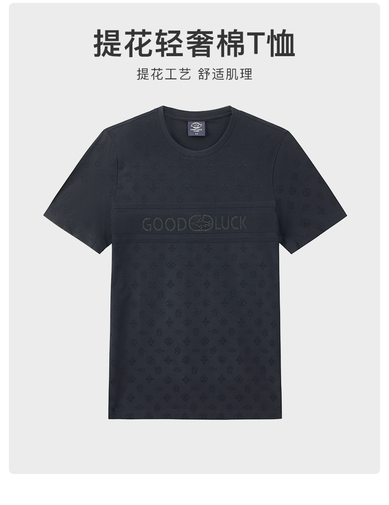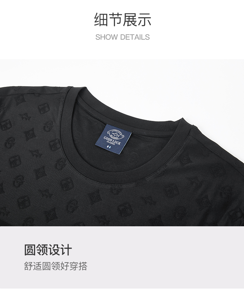 德鲨夏新款提花短袖圆领T恤男时尚立体烫钻休闲上衣打底衫