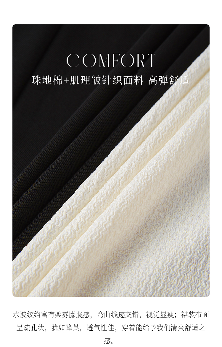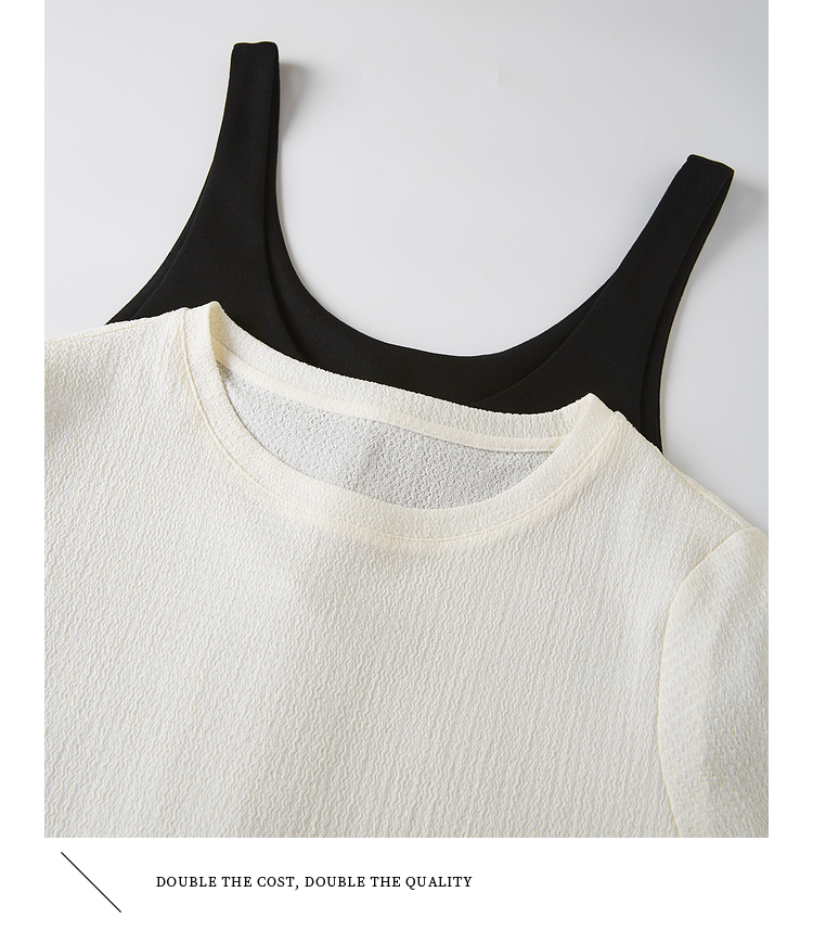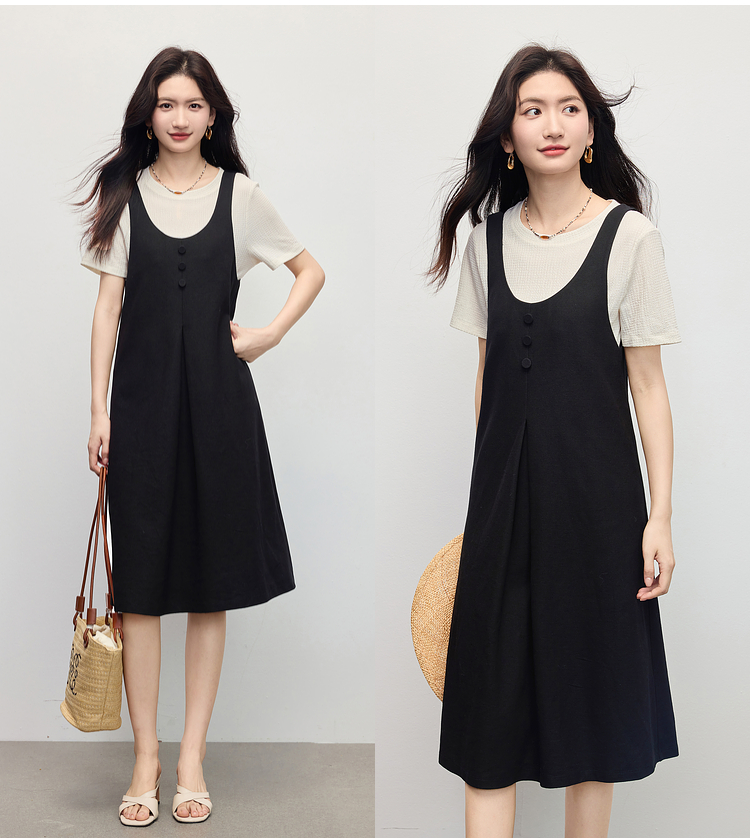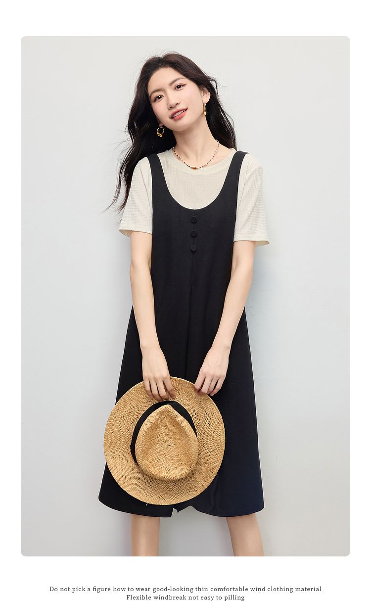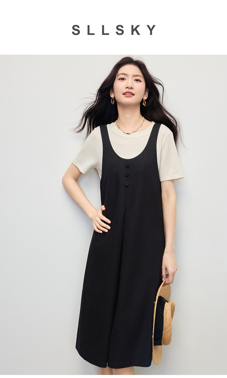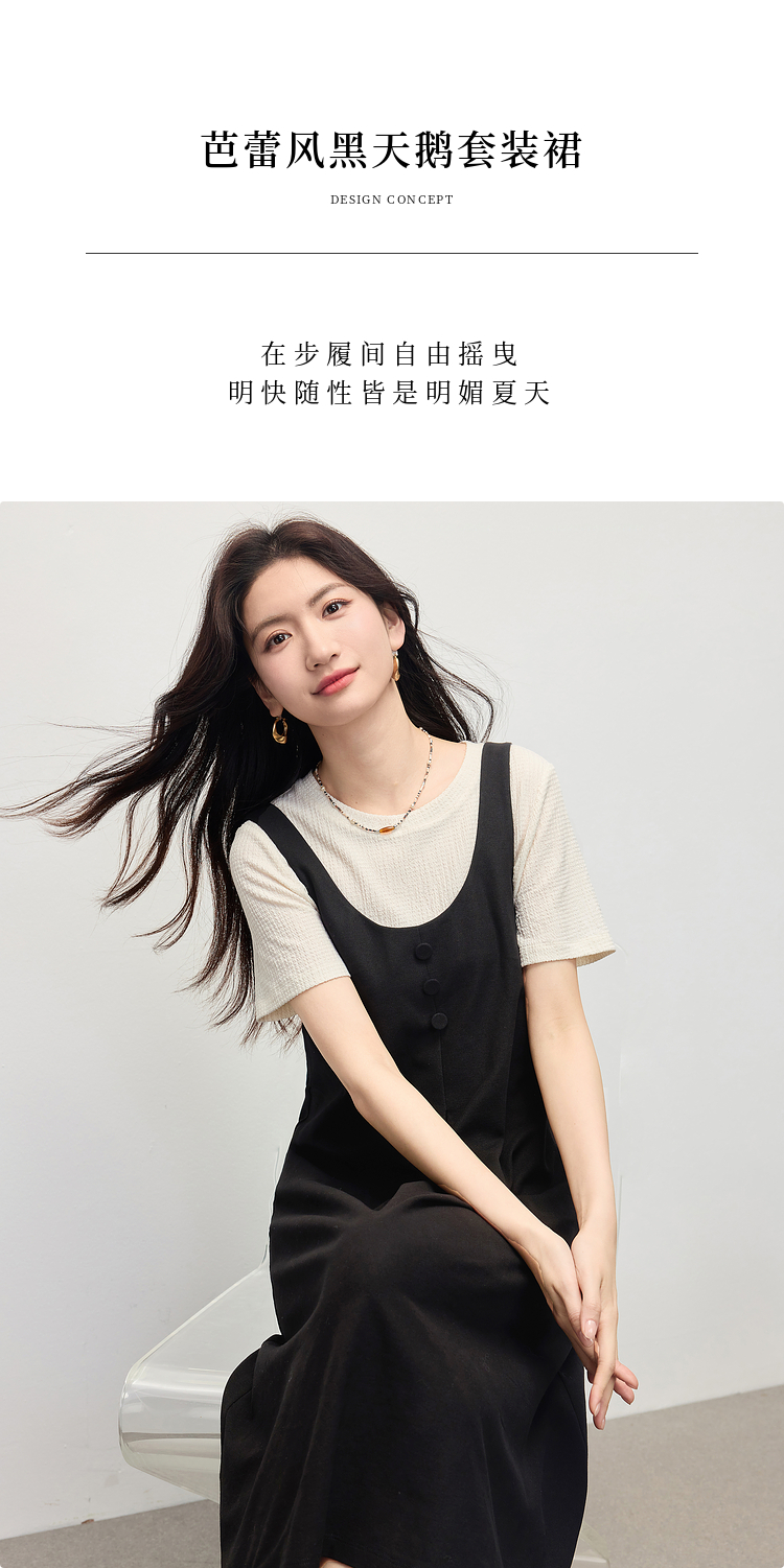 【五折购】熙世界夏日穿搭套装女2025新款肌理感短袖T恤U领吊带连衣裙两件套