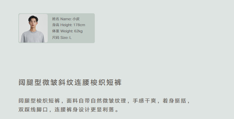 MODE COMMUTER | MC不潮品干爽微皱锦棉混纺型微皱斜纹梭织短裤
