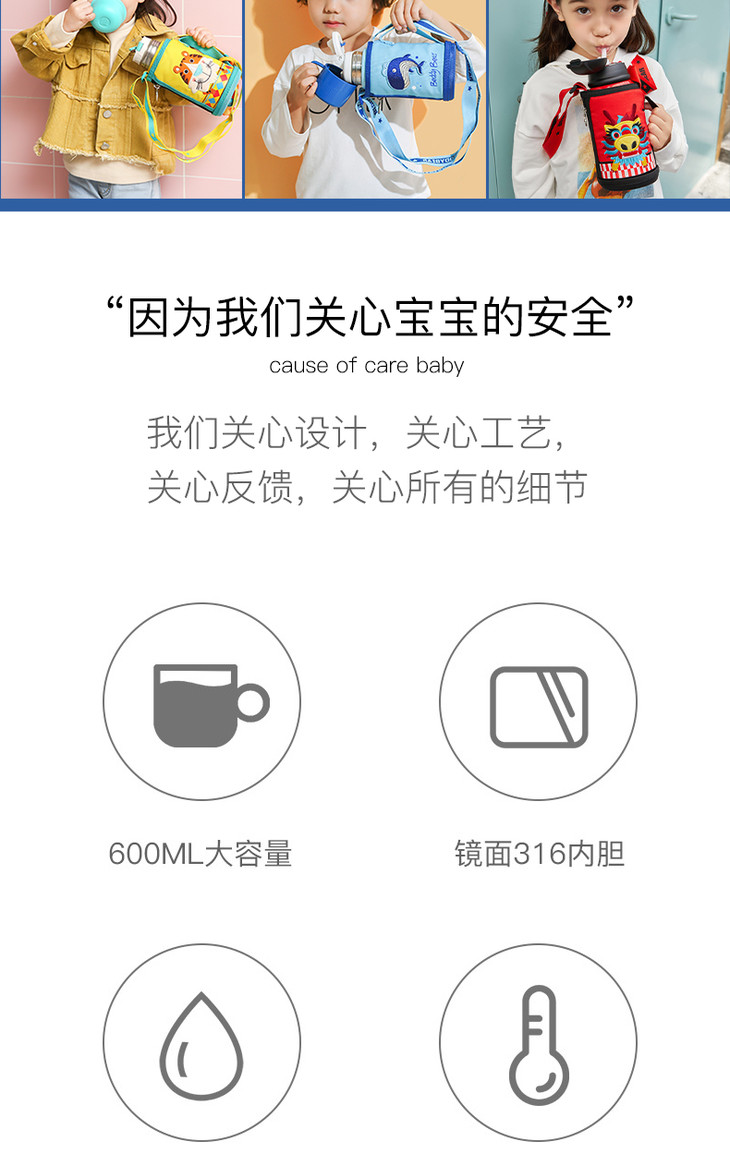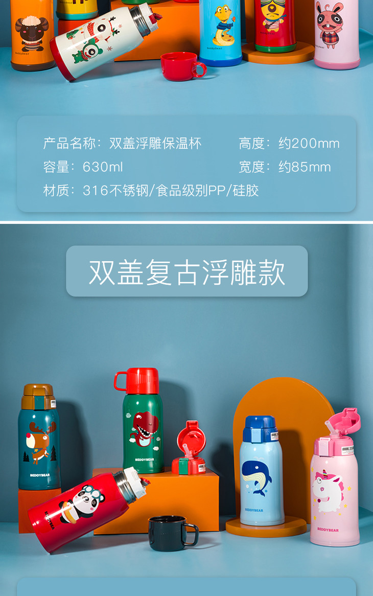 【杯具熊】韩国杯具熊儿童保温杯带吸管两用水杯男女婴幼儿园宝宝小学生保温水壶