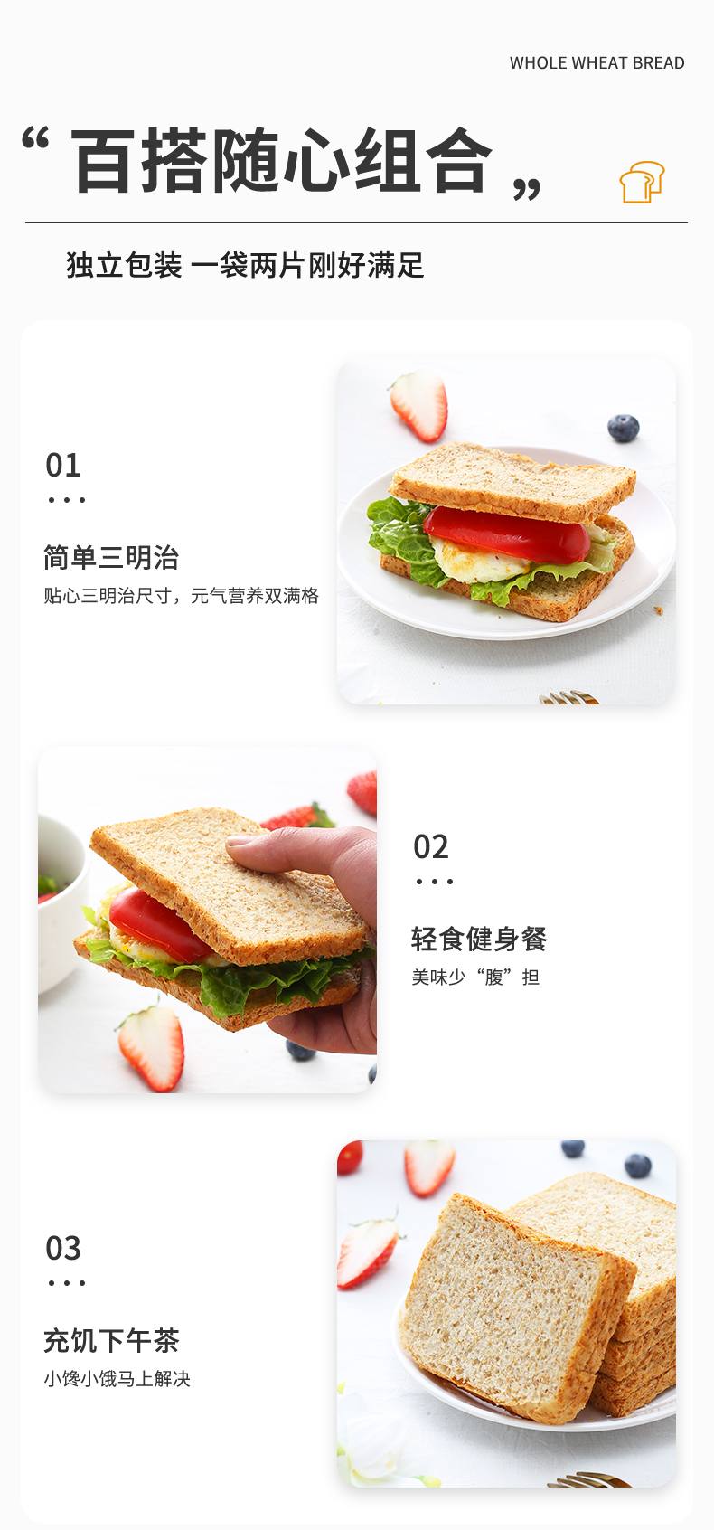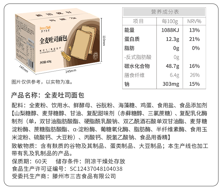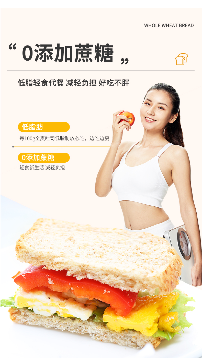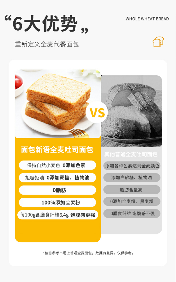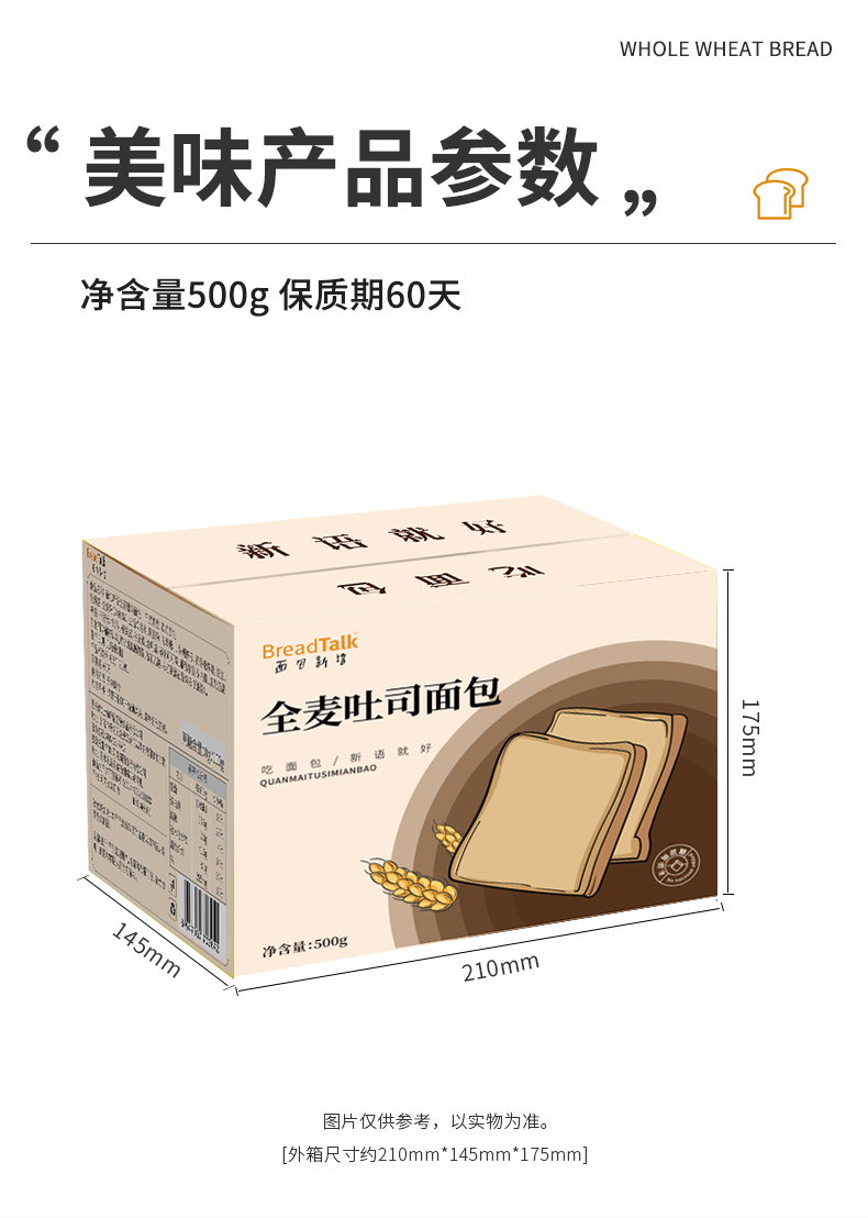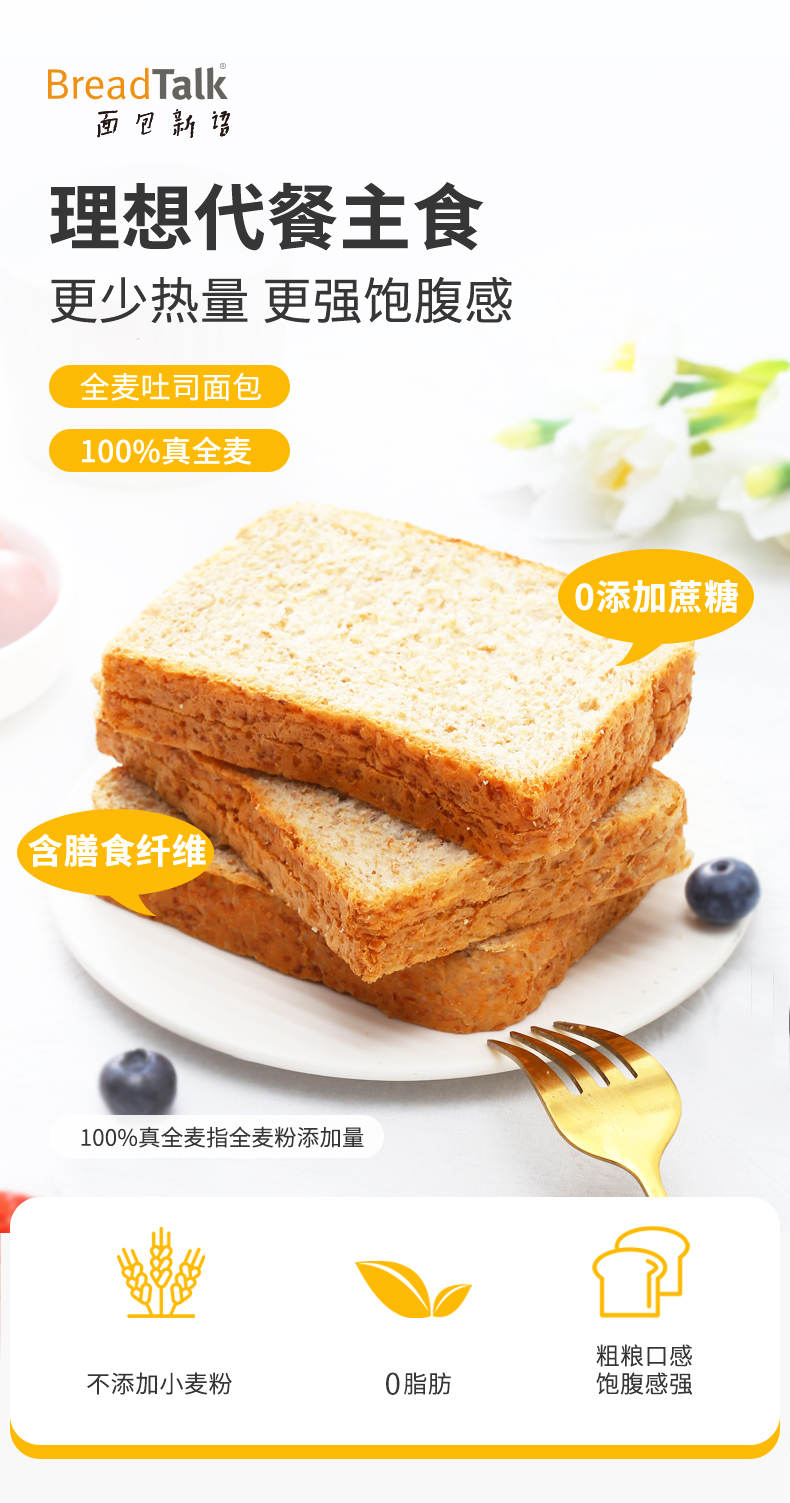 【健康早餐】面包新语 全麦谷物代餐吐司 500g/500g*2