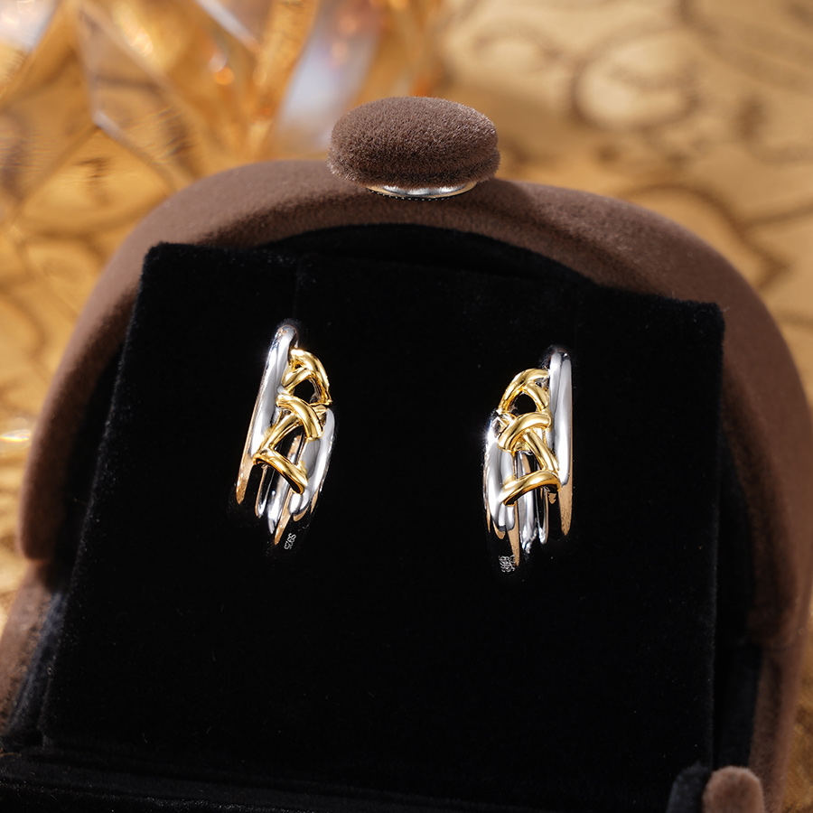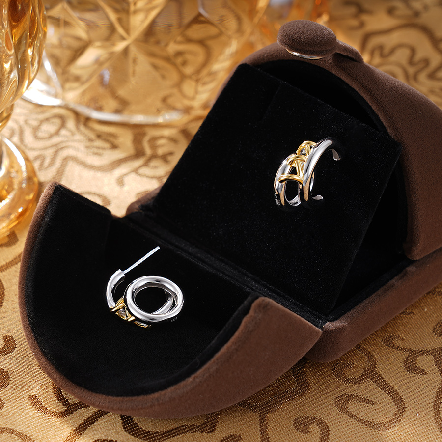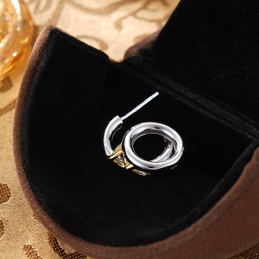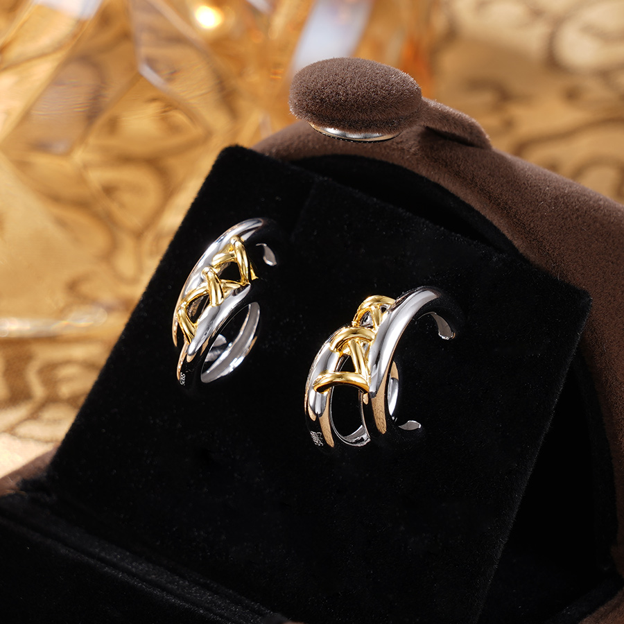 子佩集S925银【明暖】耳钉纯银【AJ00942】原创2半环带金色镀金扣环耳圈2501