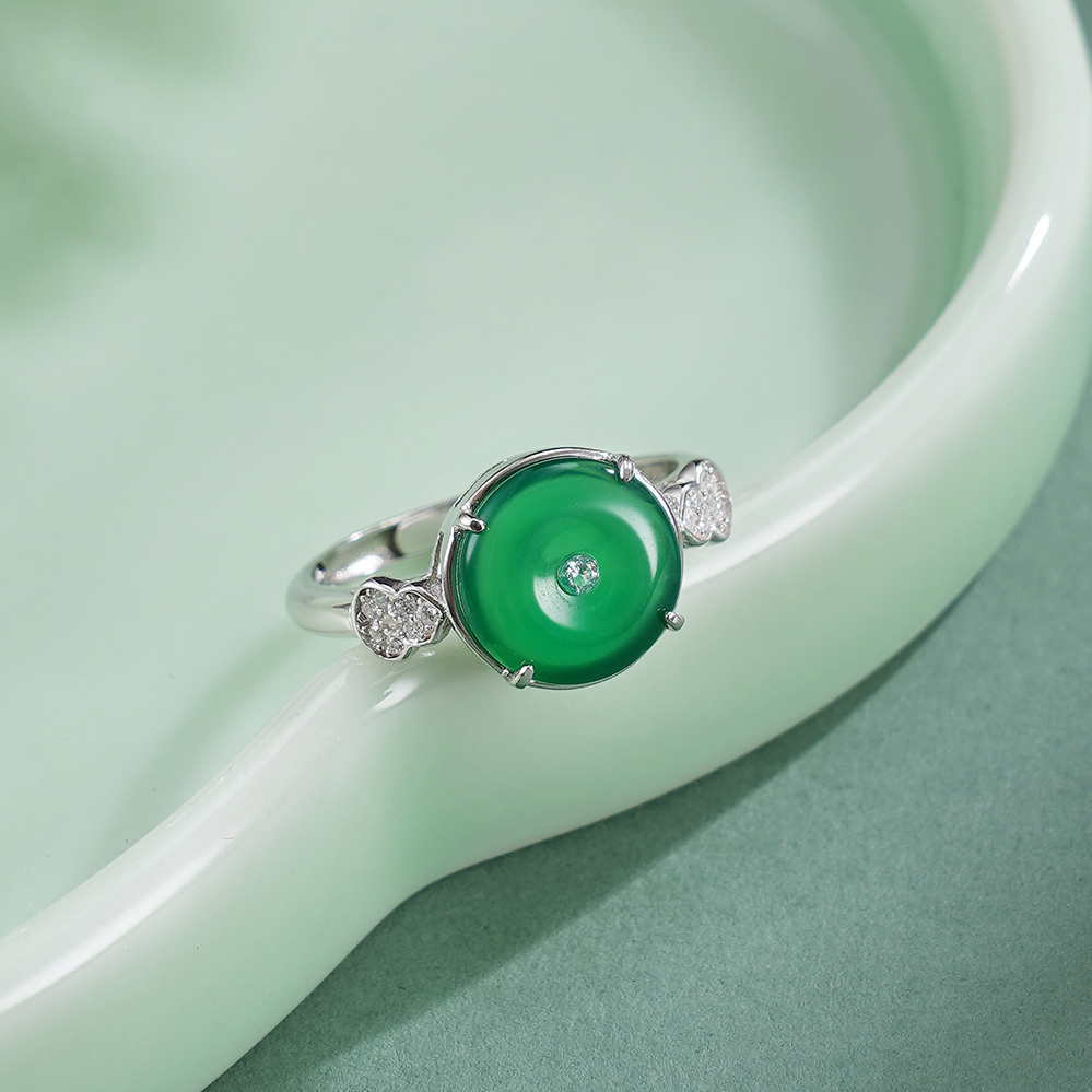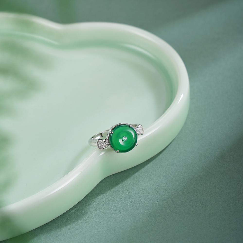 子佩集【福禄凝华】银S925戒指【JZ017477】绿玉髓平安扣葫芦2602