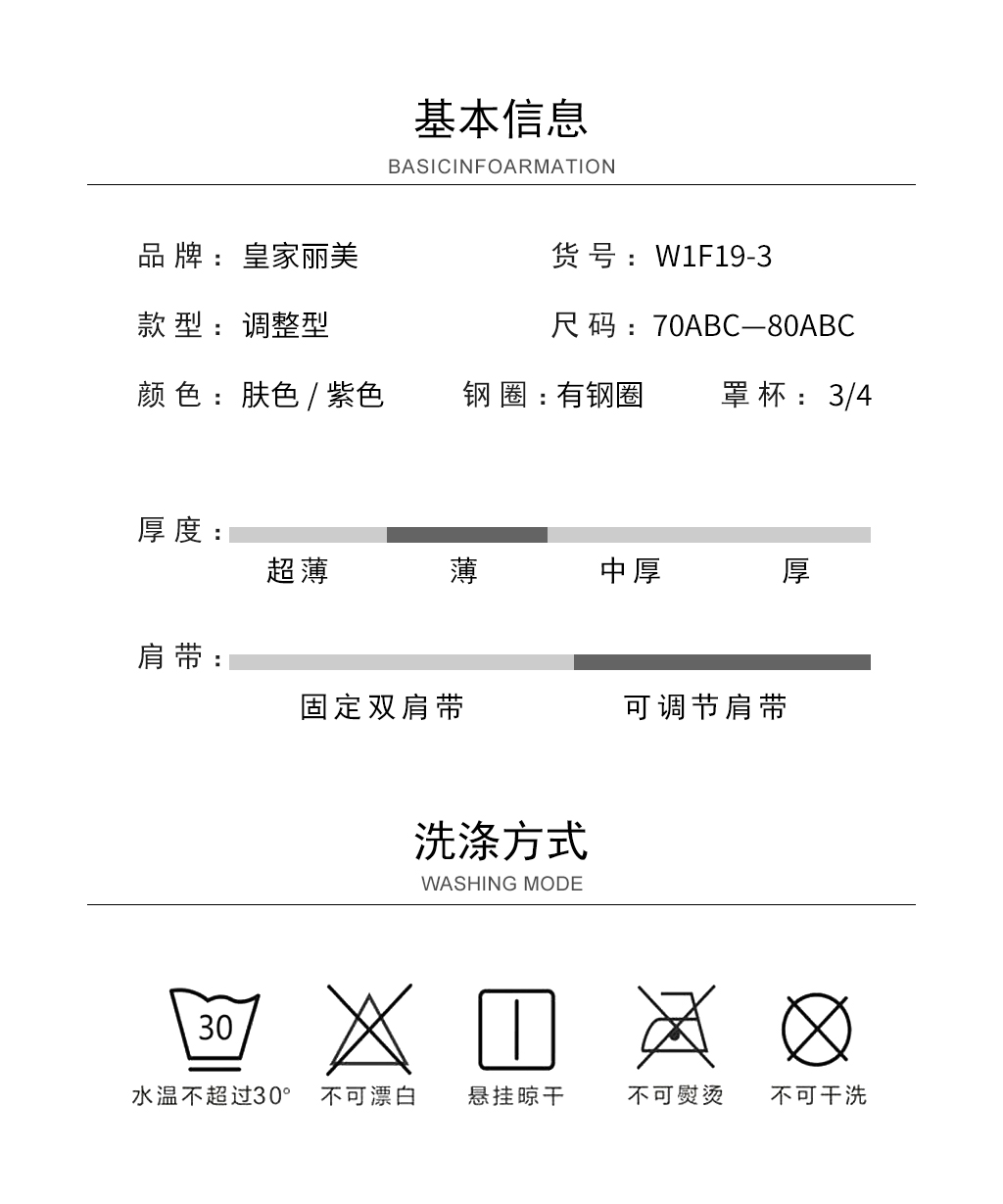 【99元2件,下单拍2!】皇家丽美厚款有钢圈聚拢调整型文胸W1F19-3
