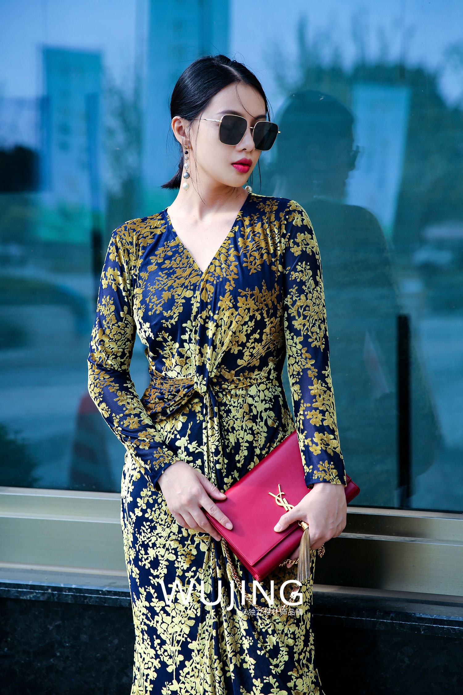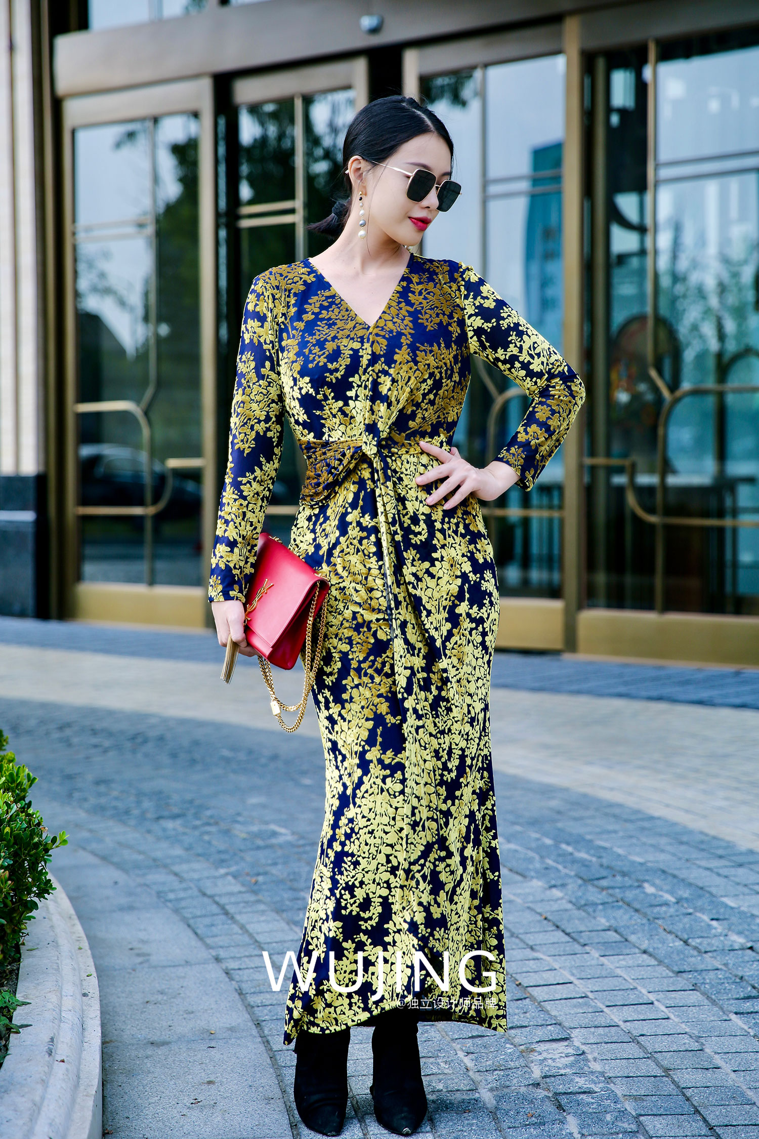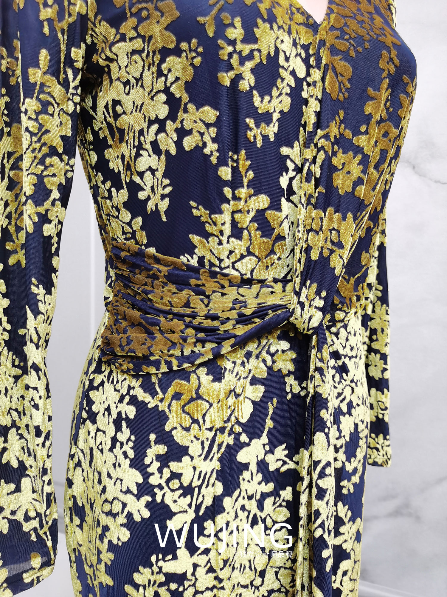 【雾境定制款】金枝玉叶烧花丝绒 优雅女人味修身连衣裙 2202213