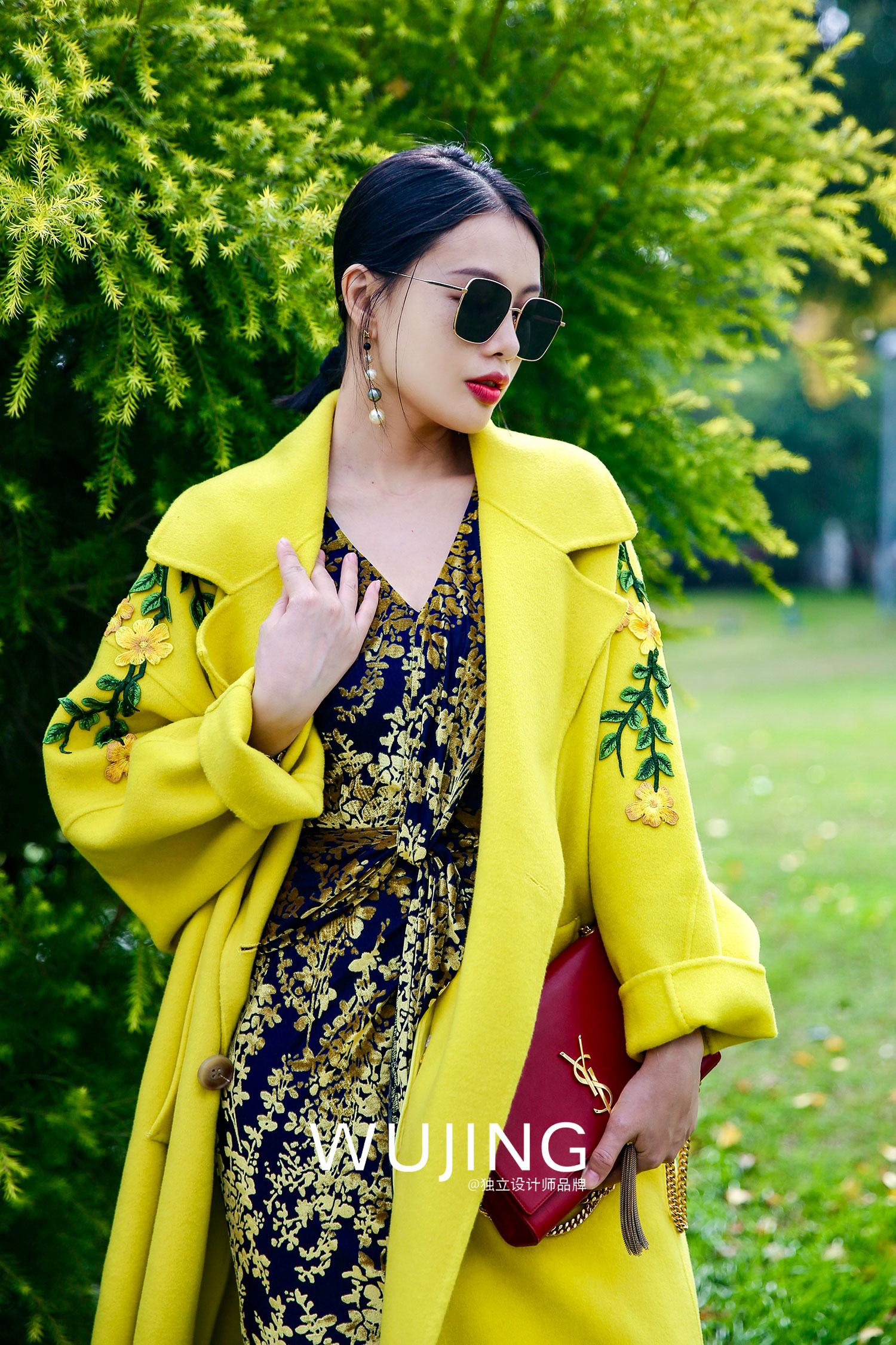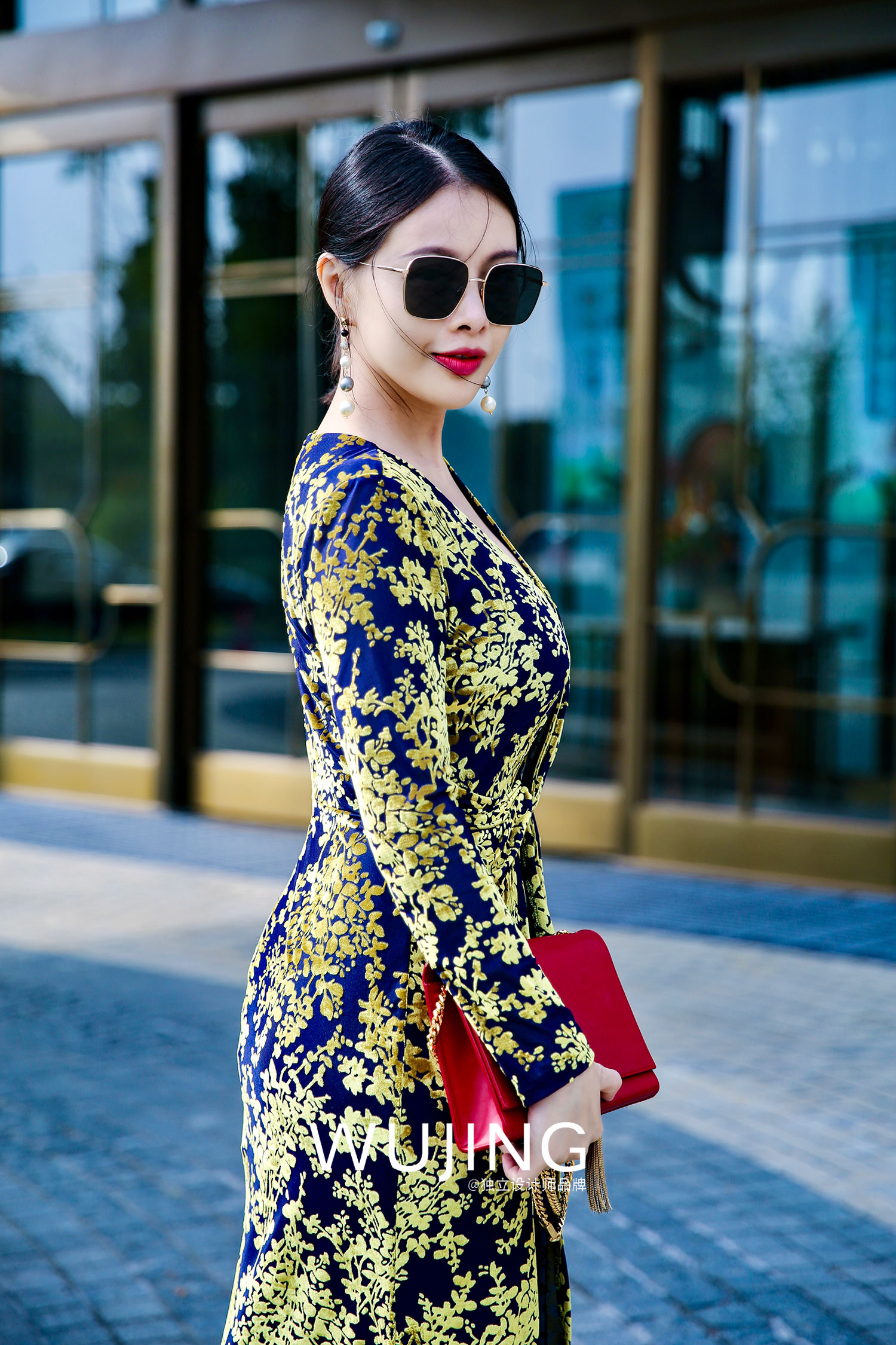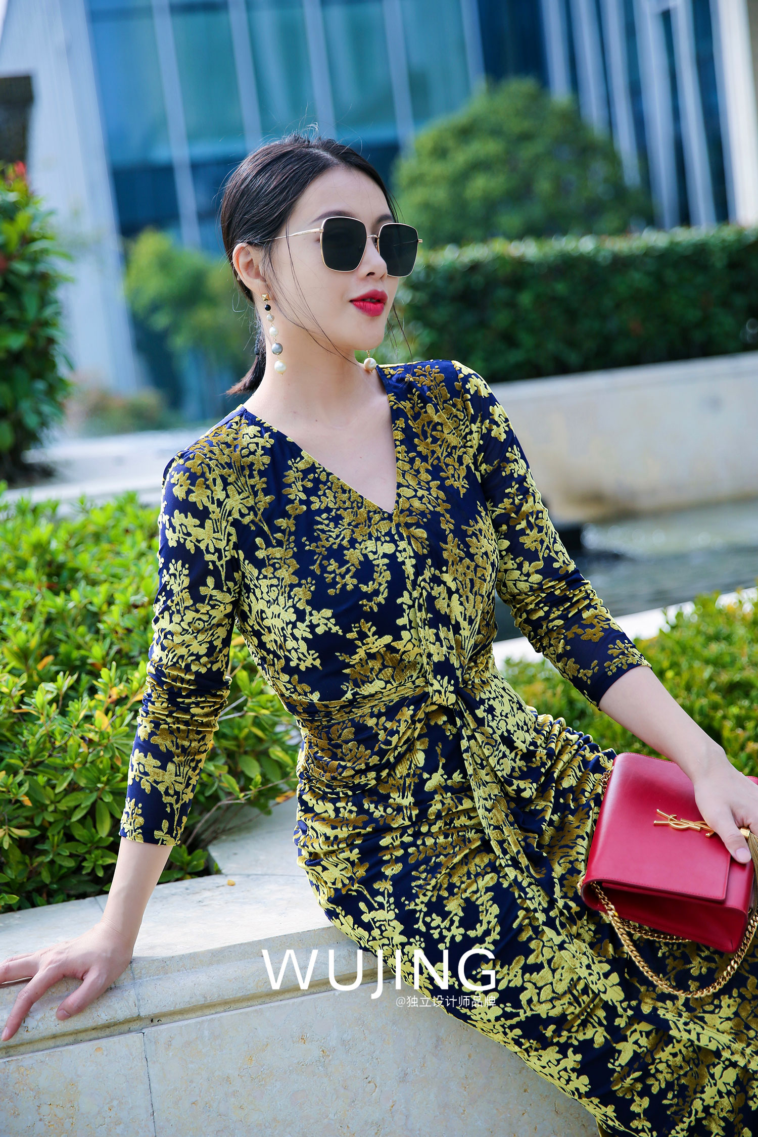 【雾境定制款】金枝玉叶烧花丝绒 优雅女人味修身连衣裙 2202213