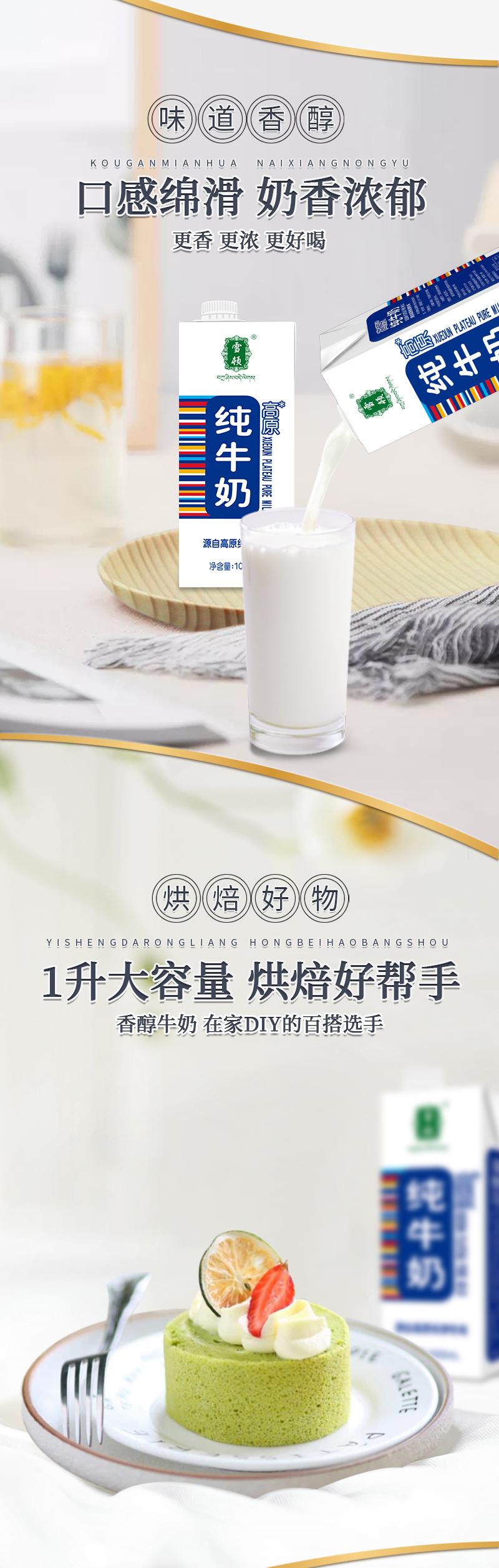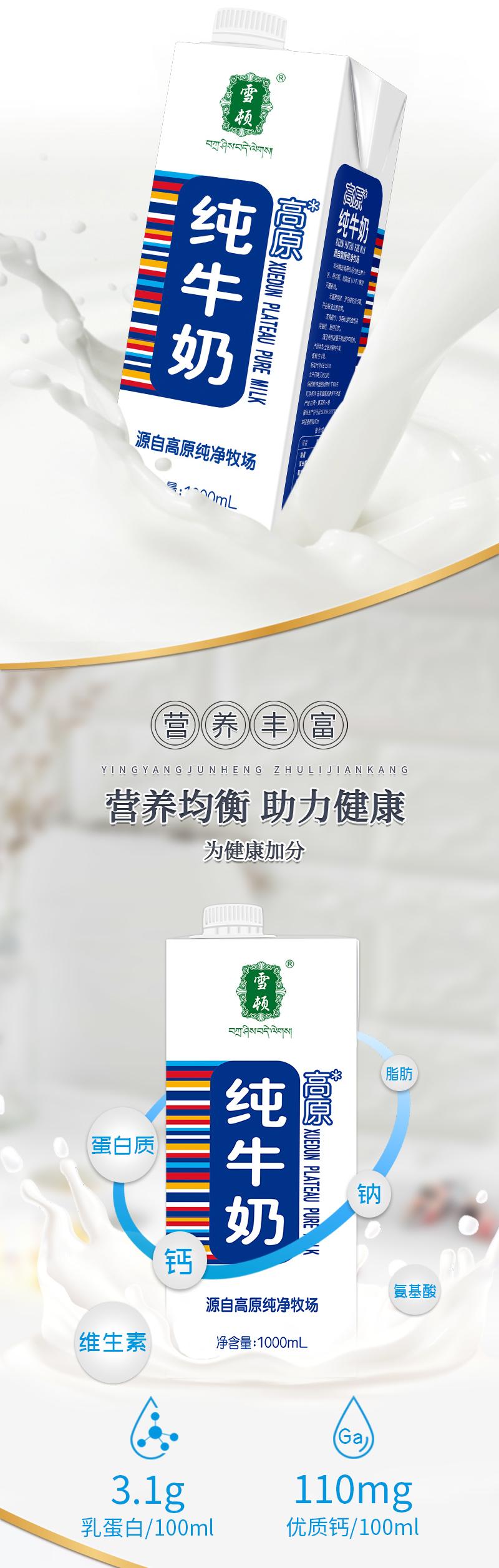 甘肃雪顿纯牛奶家庭装 1L*6瓶/箱