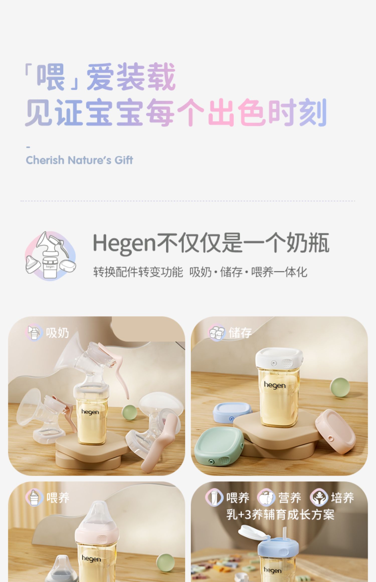 新品240ml | 新加坡Hegen新生儿宽口奶瓶PPSU婴儿大宝宝仿母乳防呛防胀气耐摔