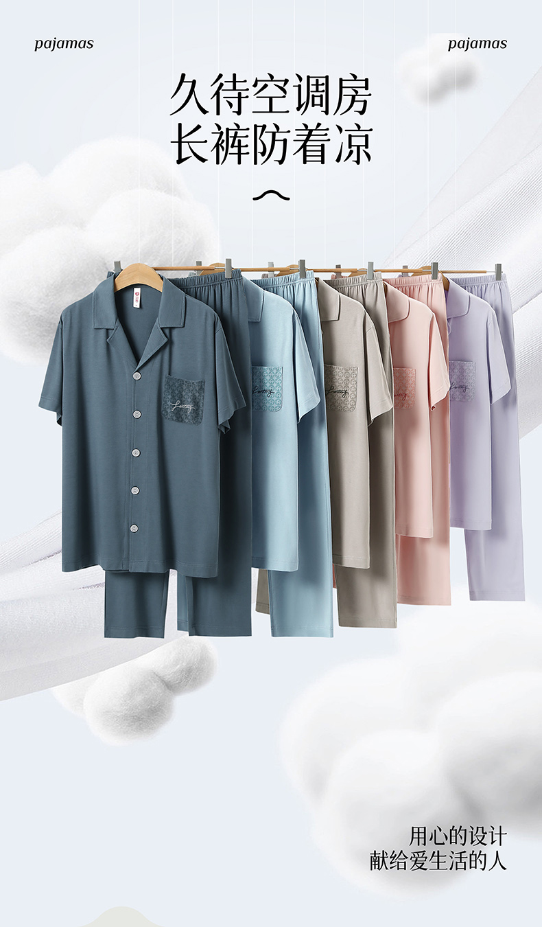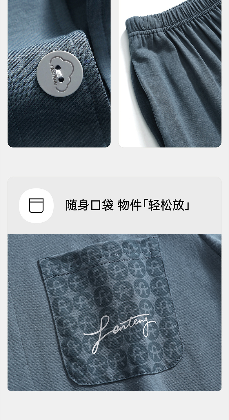 芬腾2024年新款纯棉男士睡衣夏季薄款全棉短袖长裤套装宽松家居服