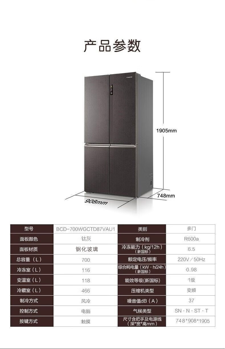 卡萨帝十字门冰箱BCD-700WGCTD87VAU1
