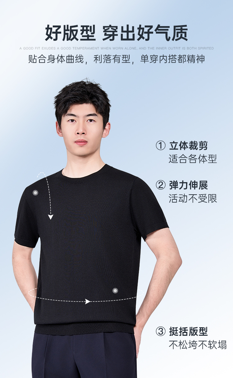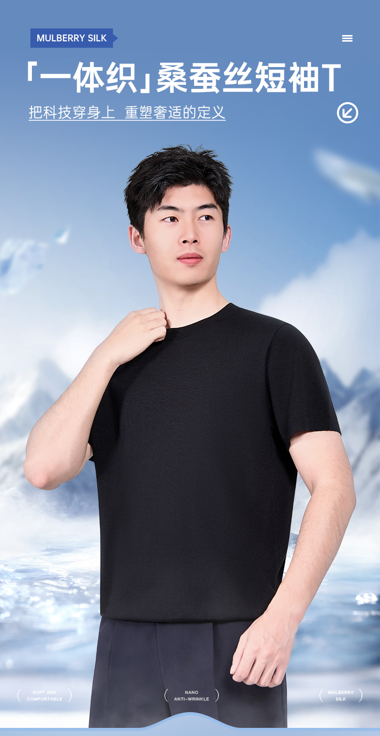 【一体织桑蚕丝短袖T恤】通勤圆领短袖T恤透气运动半袖上衣TZ606