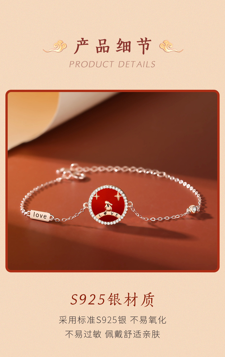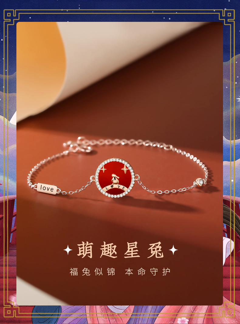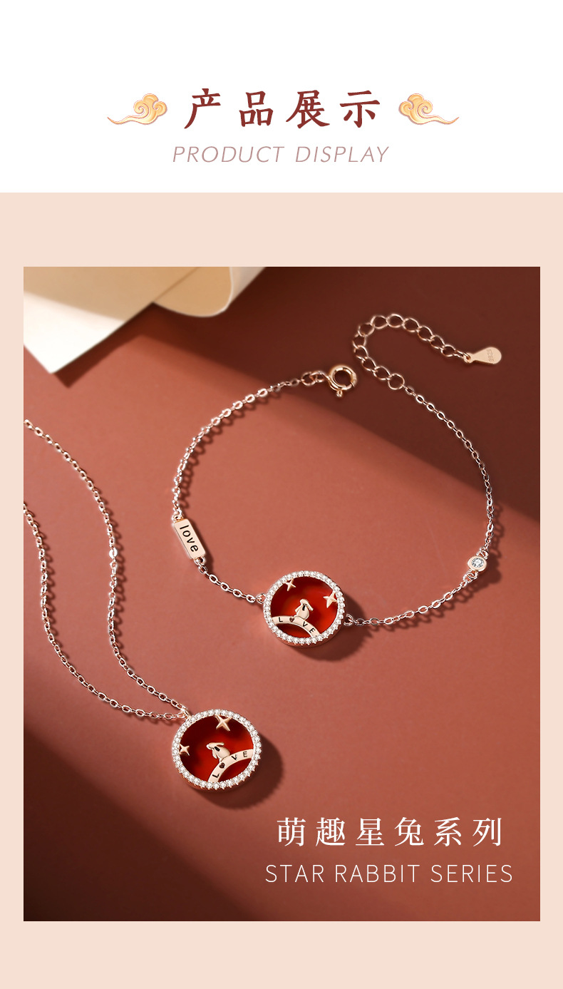 【授权商品】BOMURNNY/宝慕尼 S925纯银萌趣星兔兔子兔年限定项链手链两件套