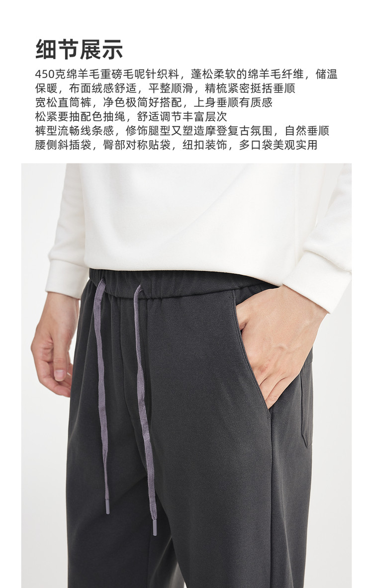墨麦客男装仿呢料磨毛男士休闲裤2025冬季新款宽松直筒男裤91536