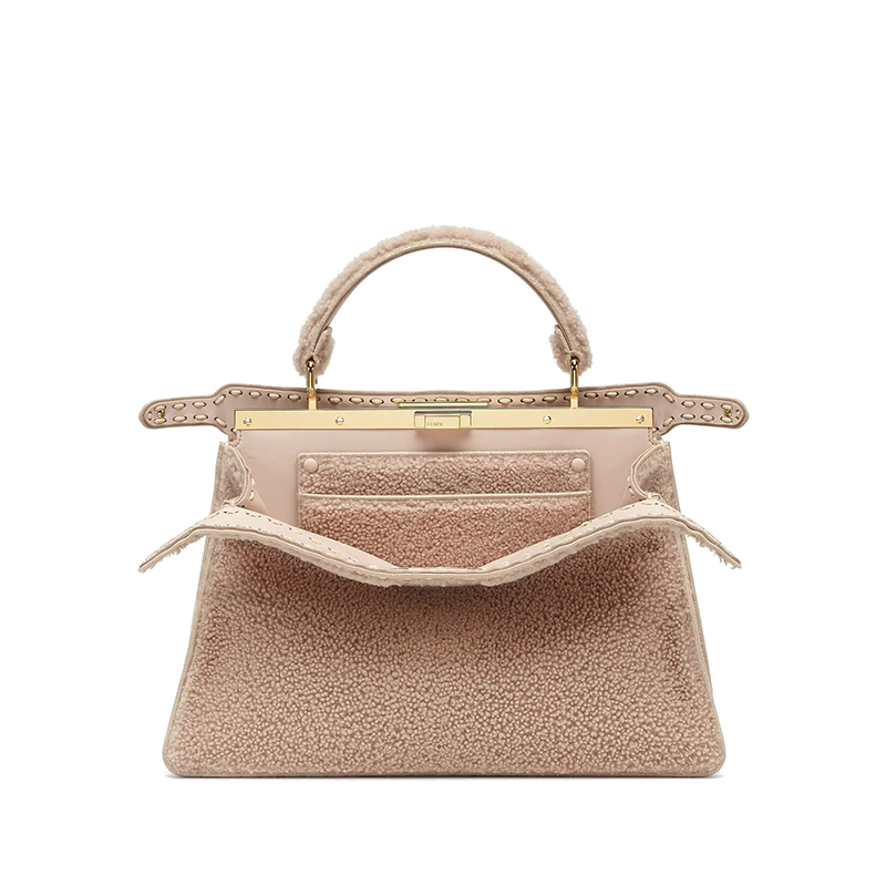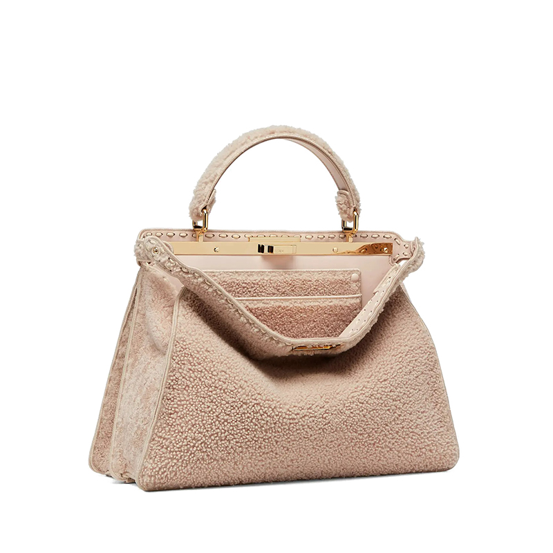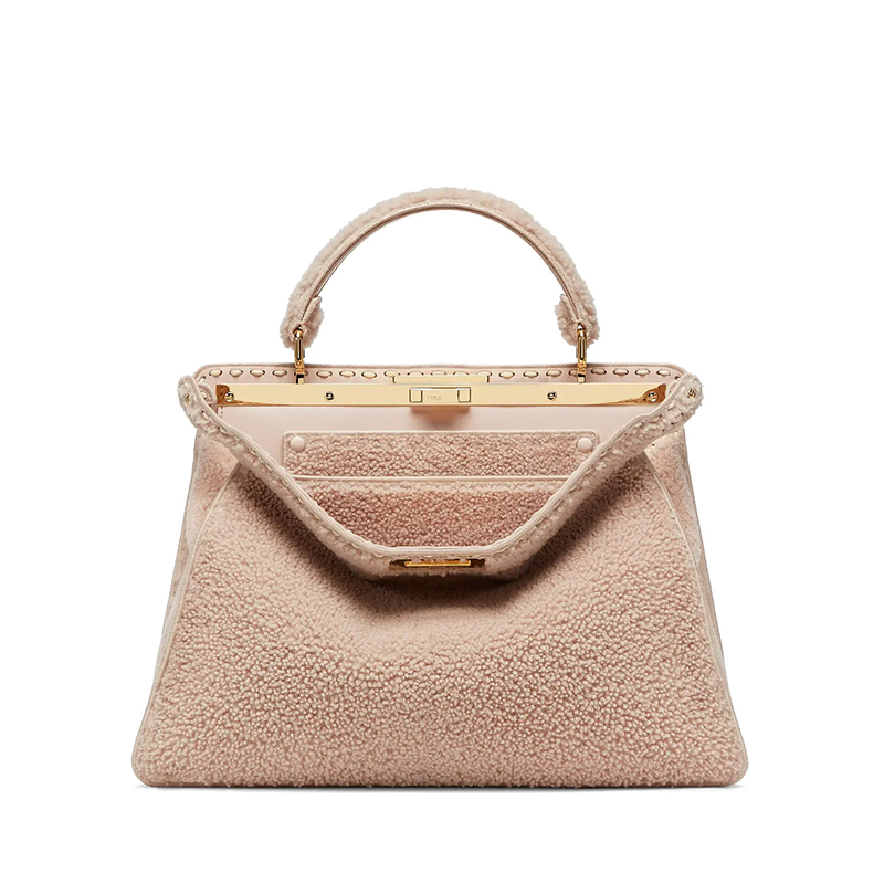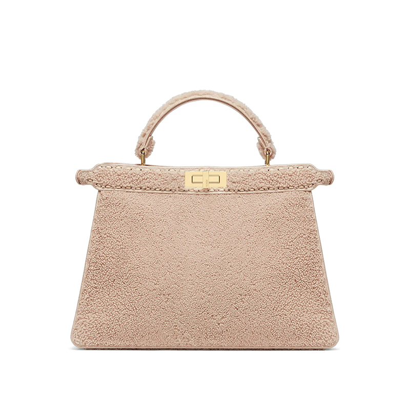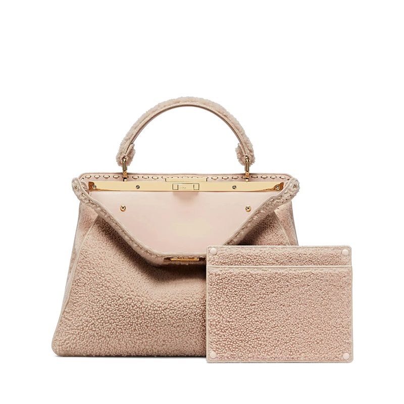FENDI/芬迪 2021秋冬新款PEEKABOO ISEEU系列 女士大号浅粉色美利奴羊皮手工缝制大针脚标志性旋转门扣配可拆卸肩带提手单肩手提包8BN328AHJ6F0H43
