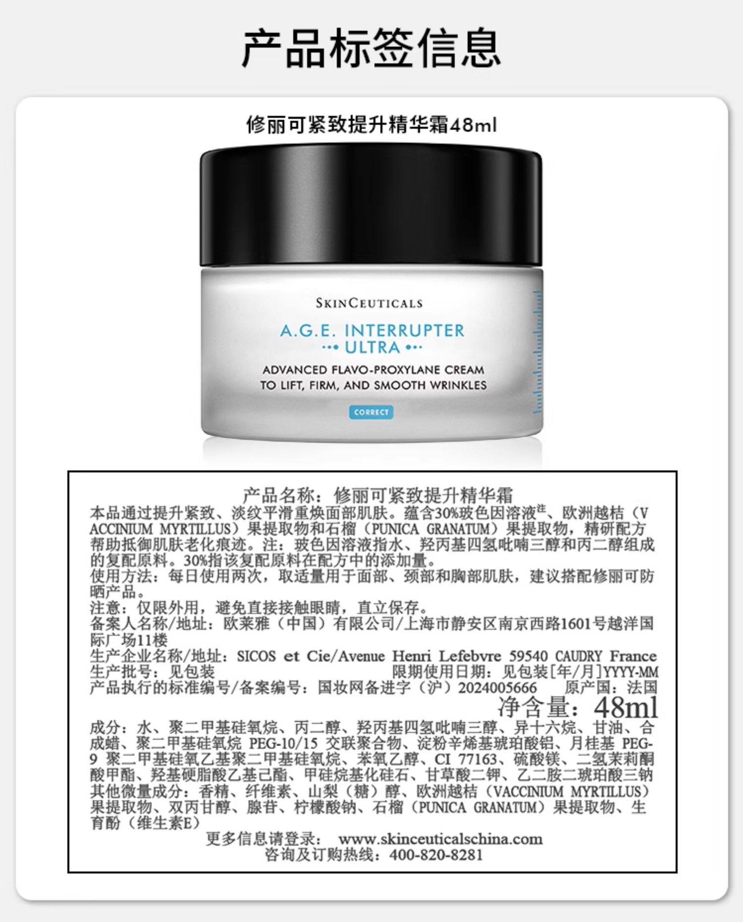 SKINCEUTICALS/修丽可AGE面霜 30%玻色因溶液紧致KAN皱抗醣DAN纹补水保湿修复滋润